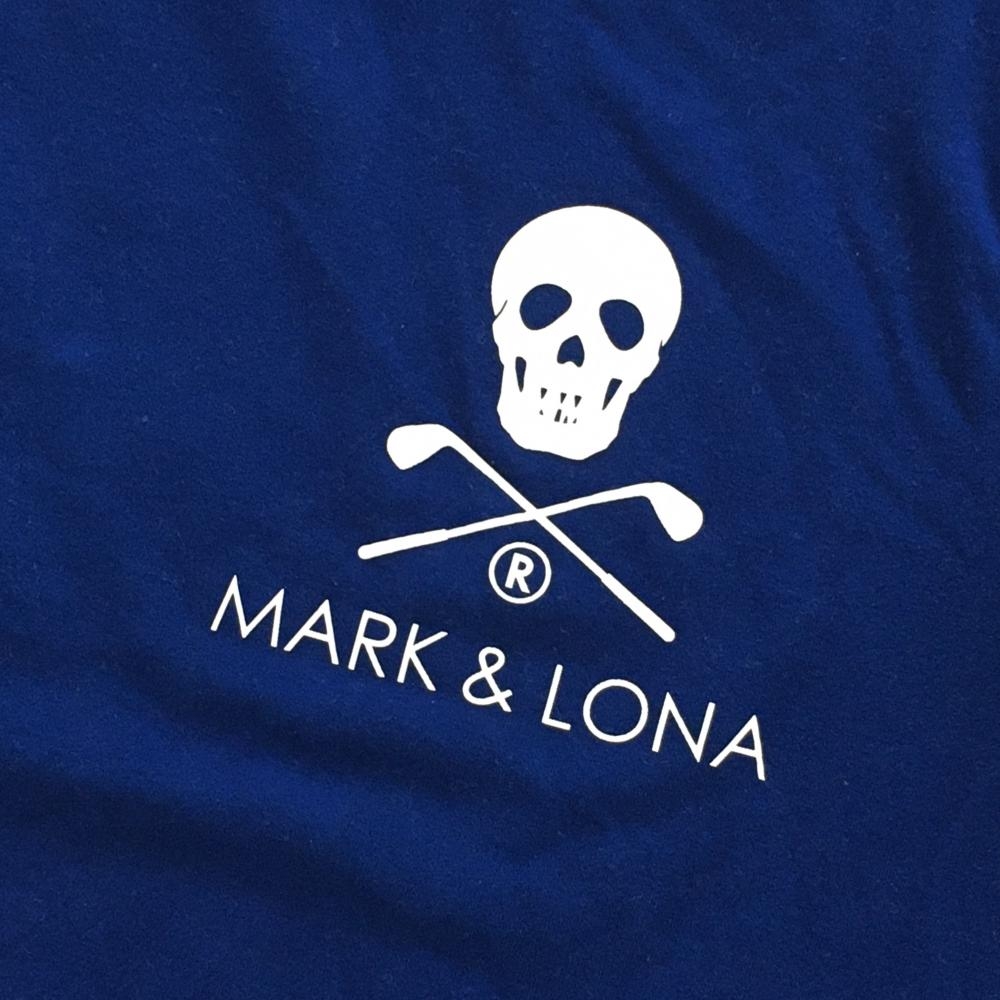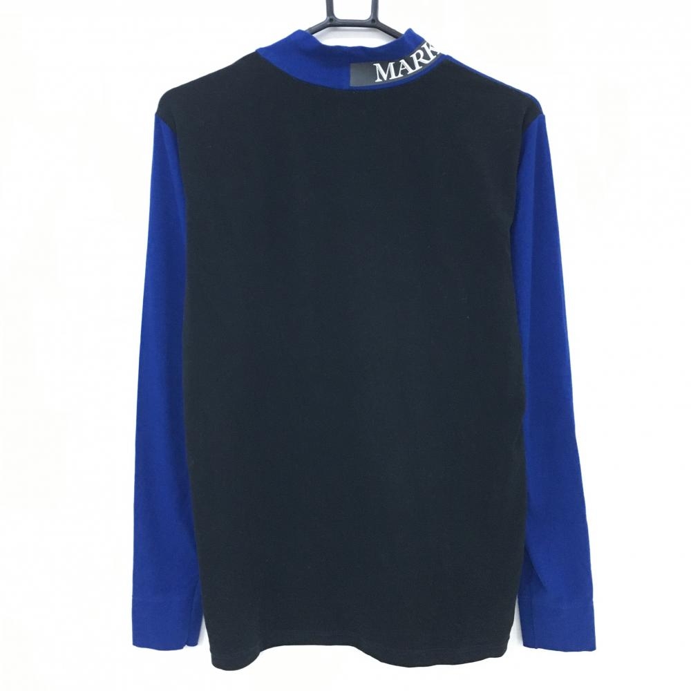 【美品】マークアンドロナ 長袖ハイネックシャツ ブルー×黒 微起毛 スカル メンズ 46(M) ゴルフウェア 2024年モデル MARK&LONA