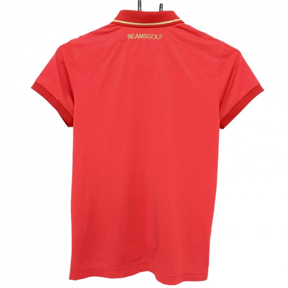 【超美品】ビームスゴルフ 半袖ポロシャツ レッド ロゴゴールド 日本製 レディース S ゴルフウェア BEAMS GOLF