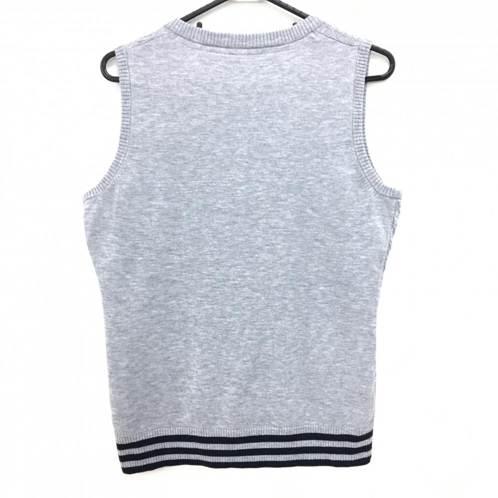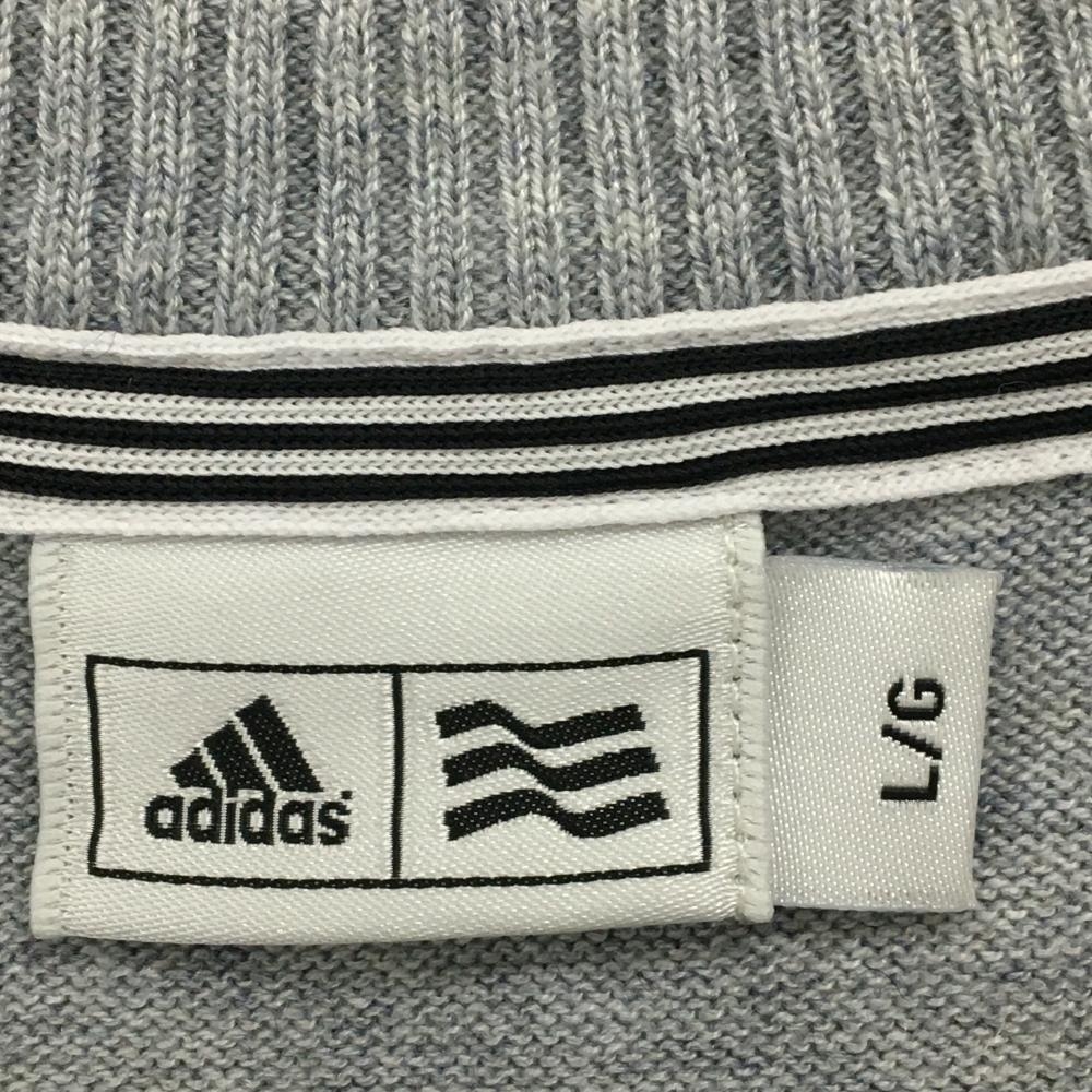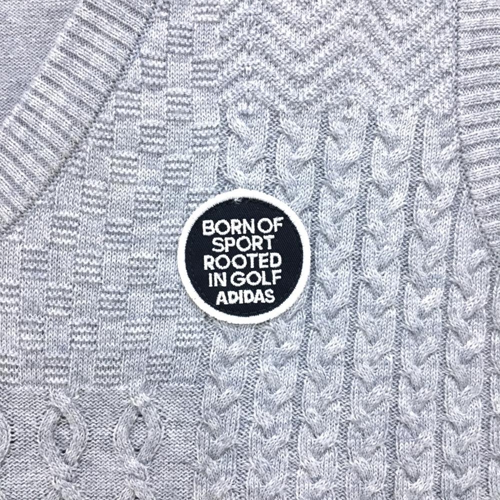 【超美品】アディダス ニットベスト 杢グレー 一部ケーブル編み ウール混 裾ライン レディース L/G ゴルフウェア adidas