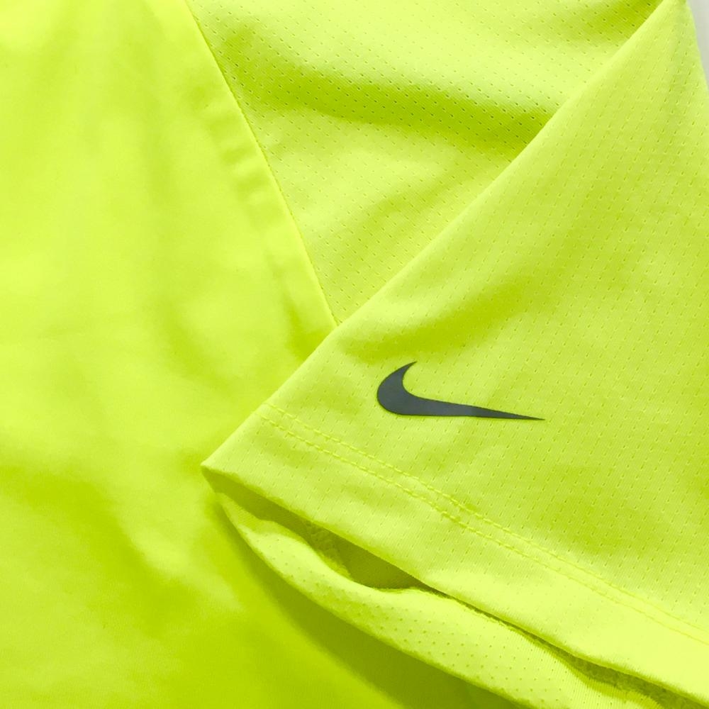 【超美品】ナイキゴルフ Tシャツ 蛍光イエロー キーネック DRY-FIT ストレッチ レディース L ゴルフウェア NIKE