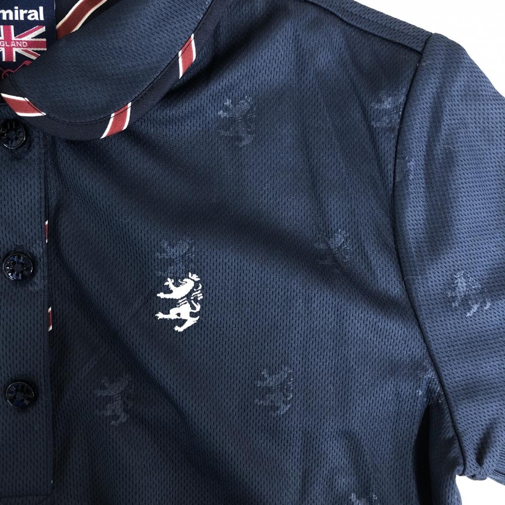 アドミラル 半袖ポロシャツ ネイビー ロゴ地模様 胸元刺しゅう レディース M ゴルフウェア Admiral