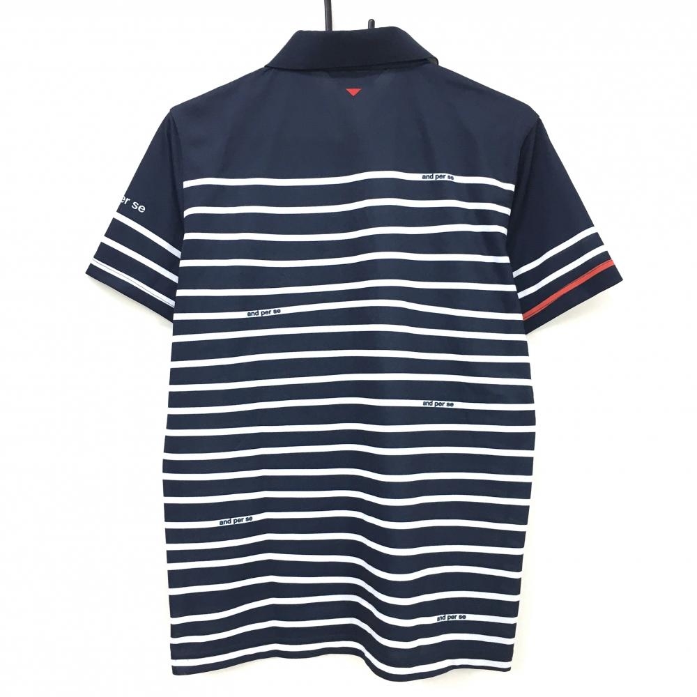 アンパスィ 半袖ポロシャツ ネイビー×白 ボーダー メンズ L ゴルフウェア and per se