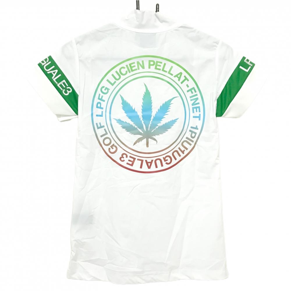【美品】ウノピゥウノウグァーレトレゴルフ 半袖ハイネックシャツ 白×グリーン 袖ライン レディース I(S) ゴルフウェア 1PIU1UGUALE3
