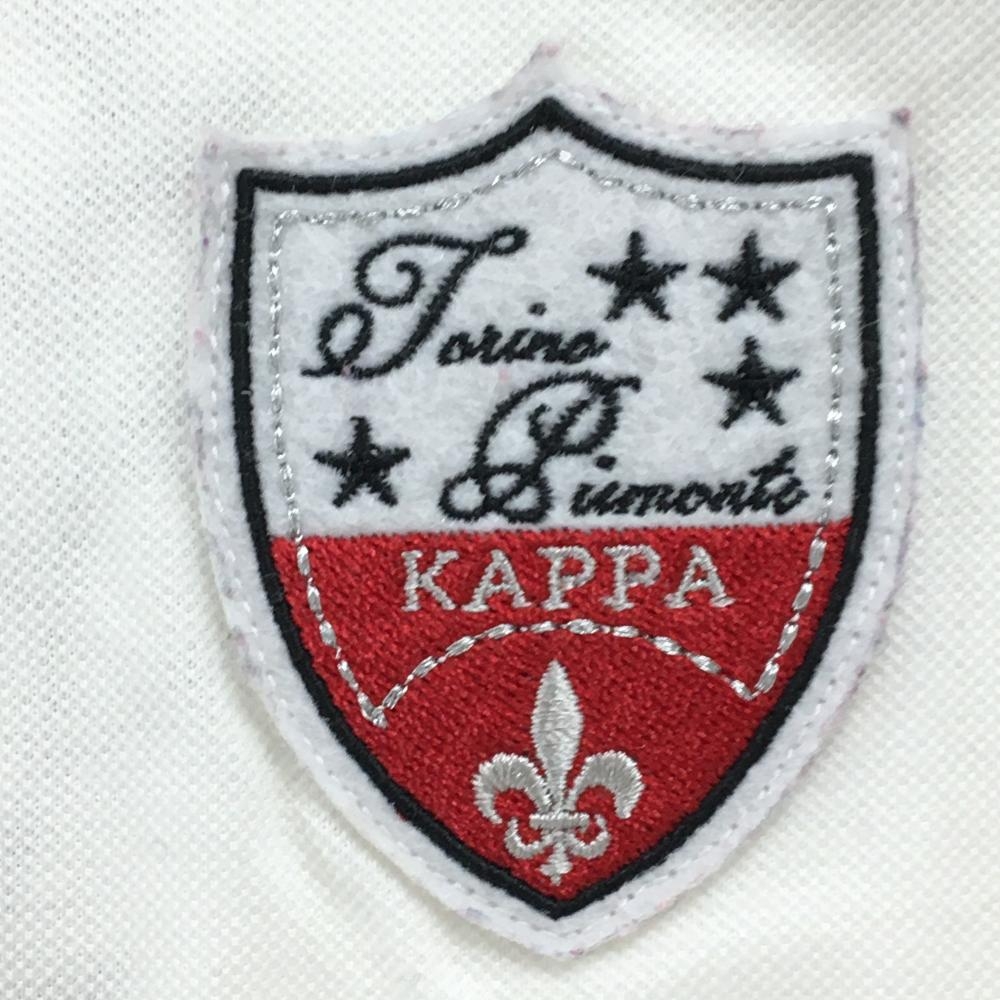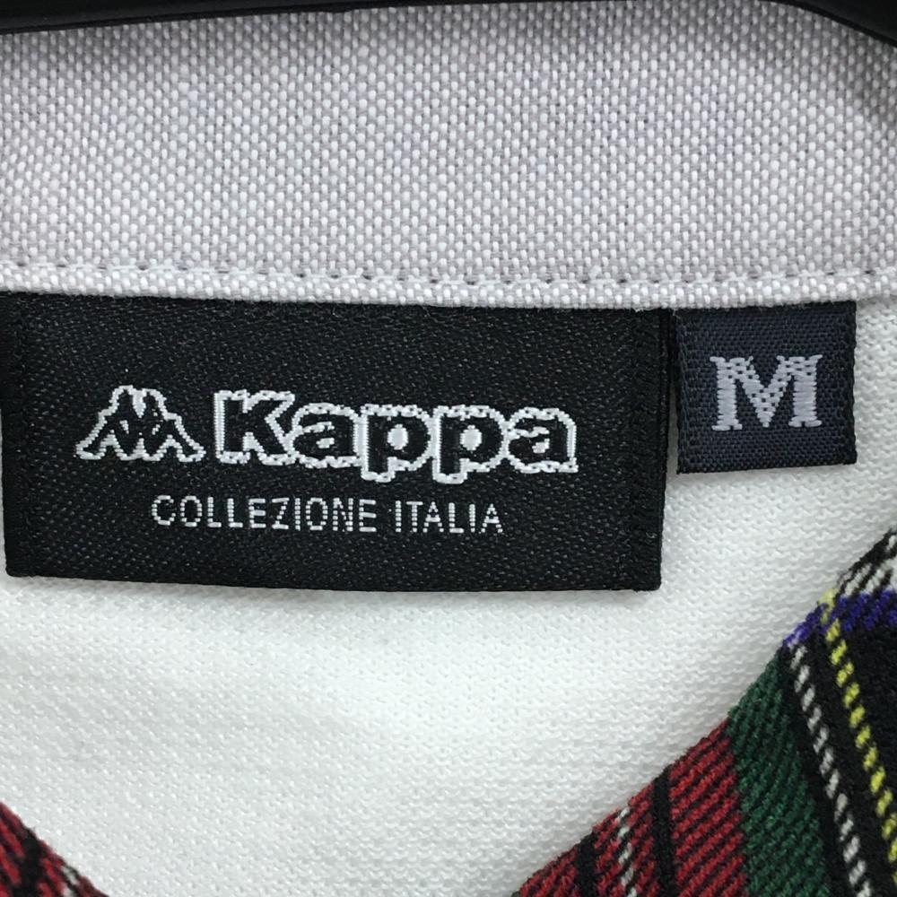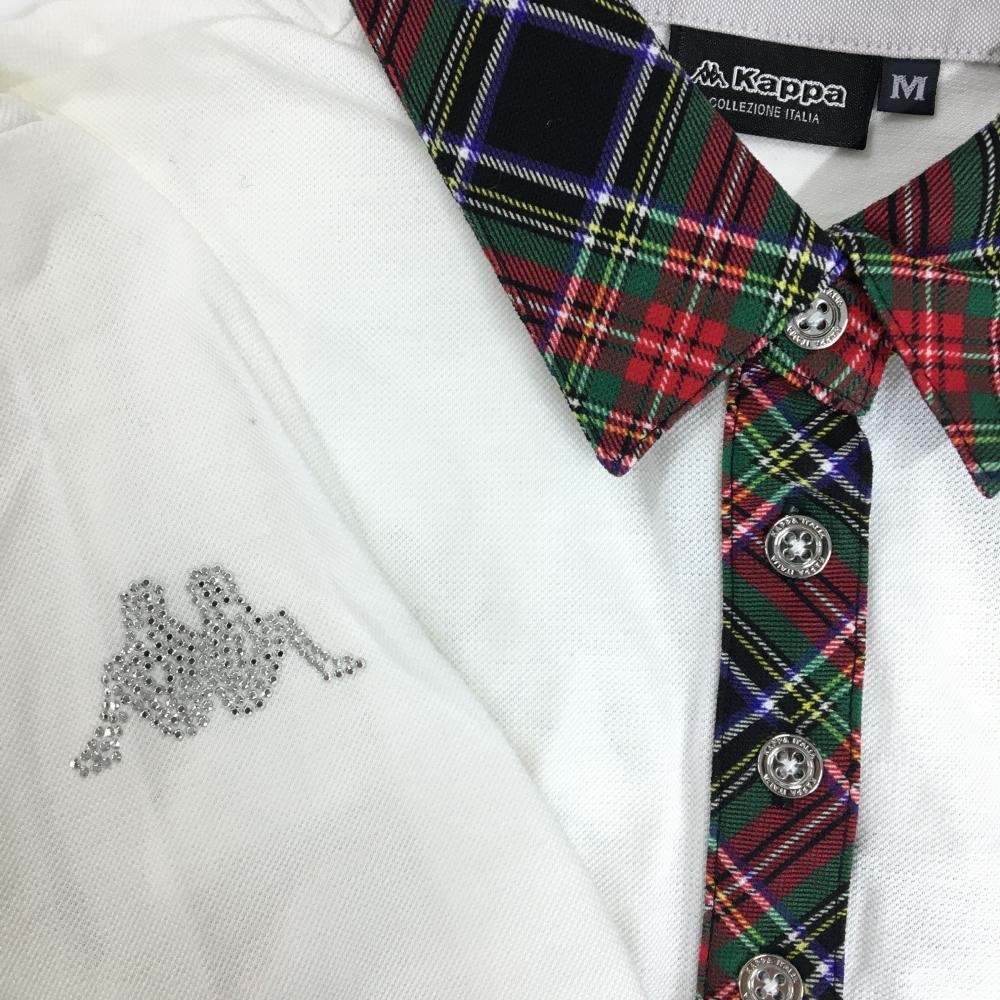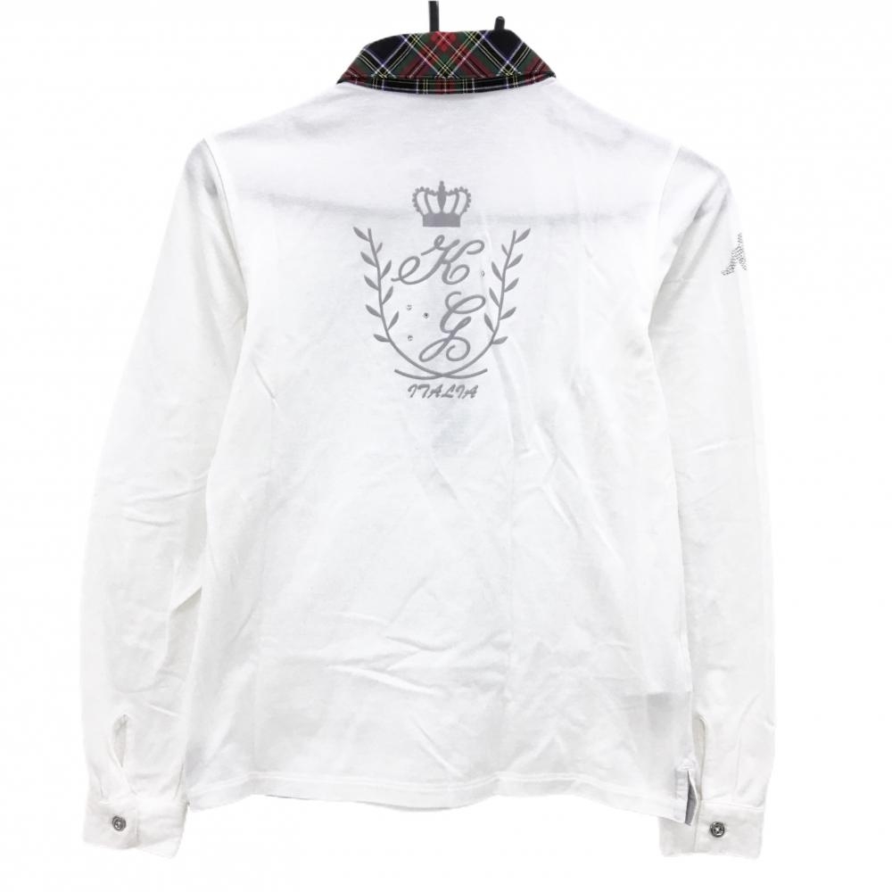 【美品】カッパ 長袖ポロシャツ 白×レッド 襟・前立てチェック ロゴワッペン レディース M ゴルフウェア Kappa