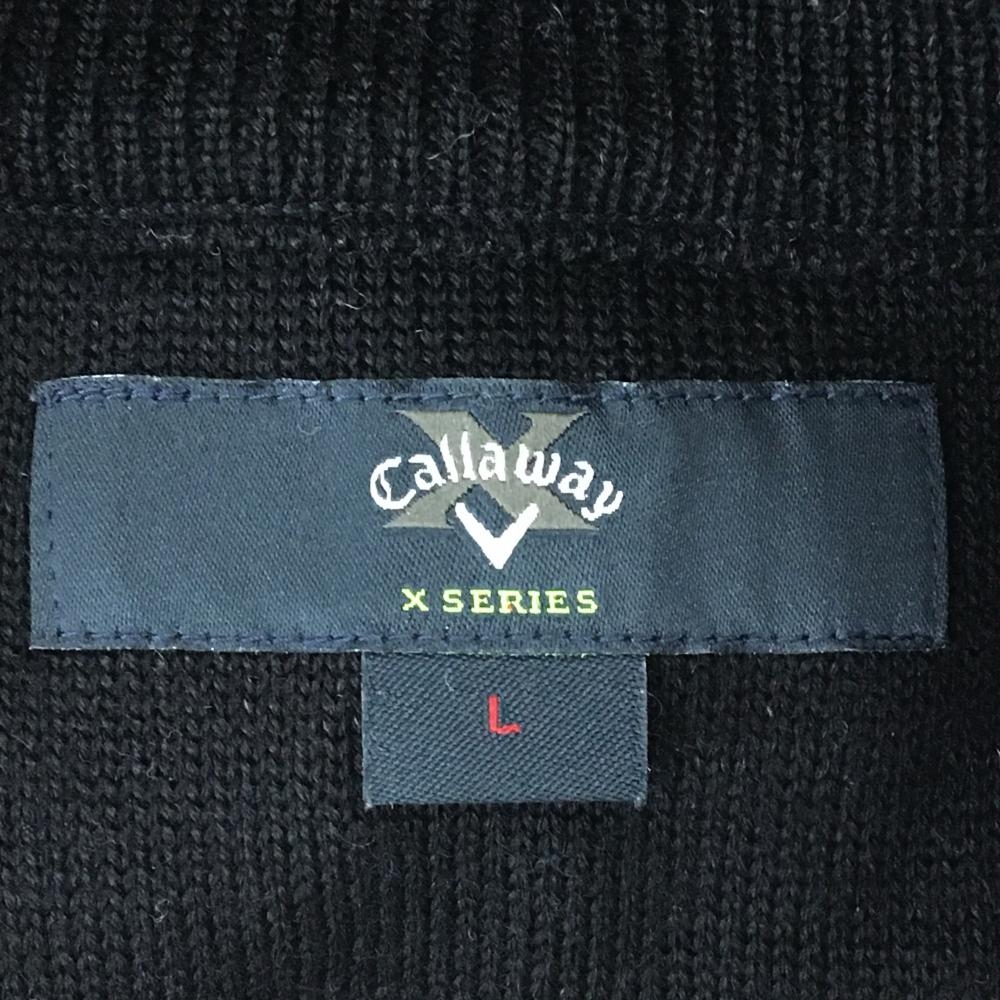 【美品】キャロウェイ ハイネックニットベスト 黒×ピンク 立体ハート編み ハーフジップ ウール混 レディース L ゴルフウェア Callaway