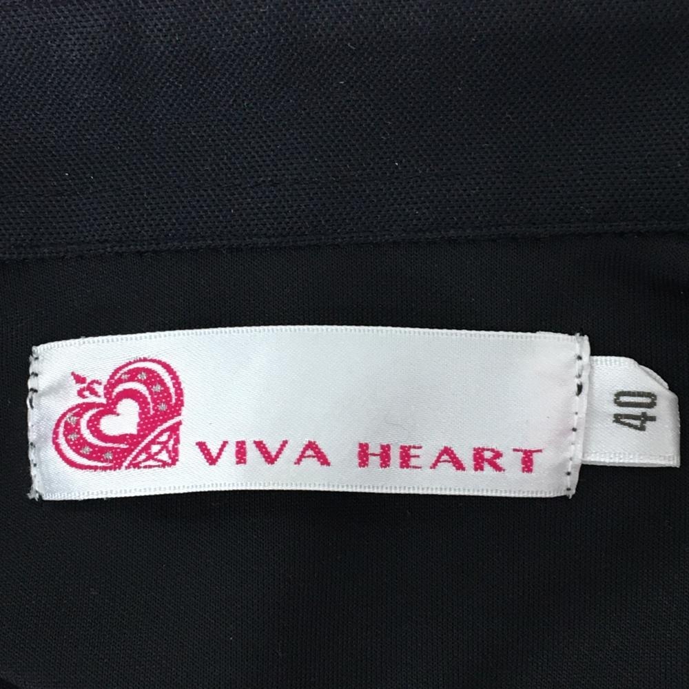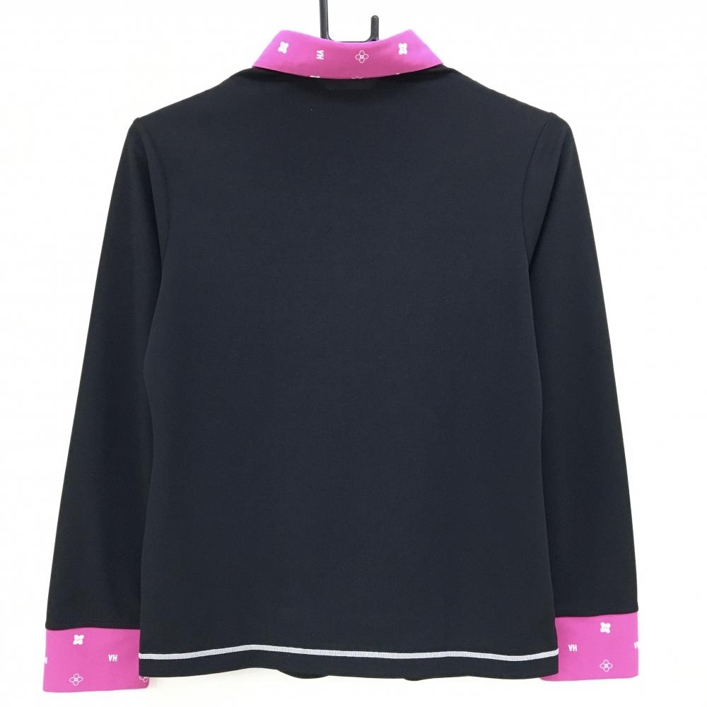 【美品】ビバハート 長袖ポロシャツ 黒×ピンク 重ね着風 襟・袖口ロゴ総柄 レディース 40(M) ゴルフウェア VIVA HEART