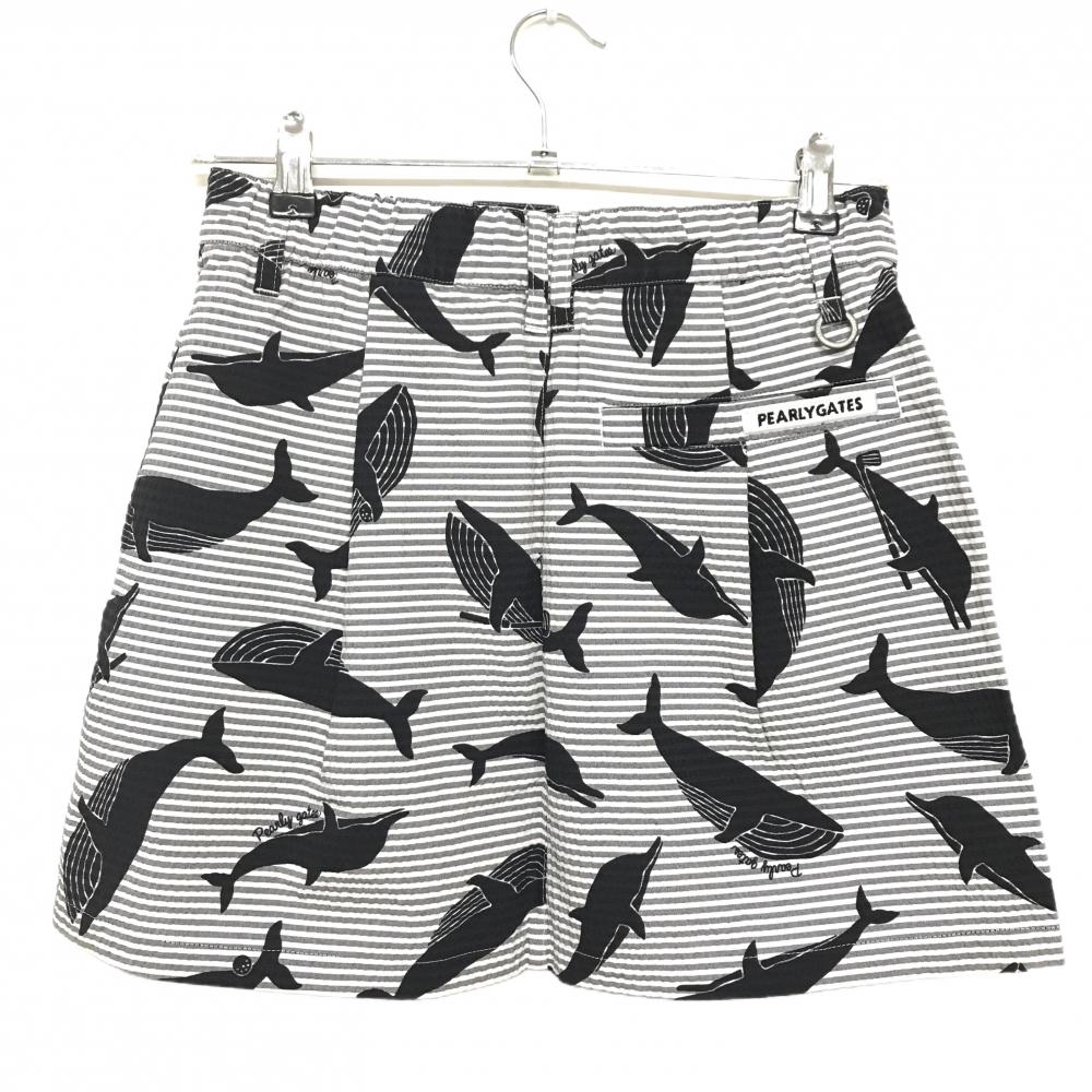 【新品】パーリーゲイツ スカート 白×グレー×黒 総柄 イルカ クジラ ボーダー レディース 0(S) ゴルフウェア PEARLY GATES
