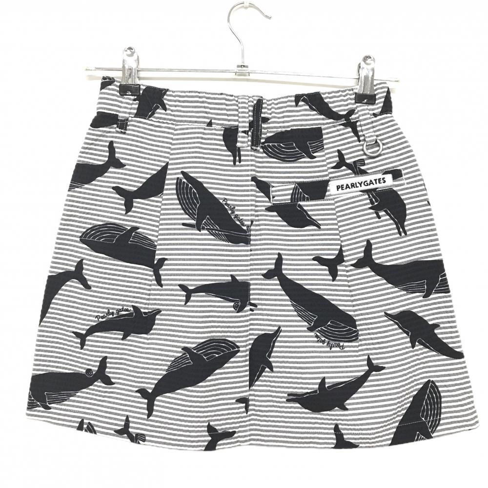 【新品】パーリーゲイツ スカート 白×グレー×黒 総柄 イルカ クジラ ボーダー レディース 00(XS) ゴルフウェア PEARLY GATES