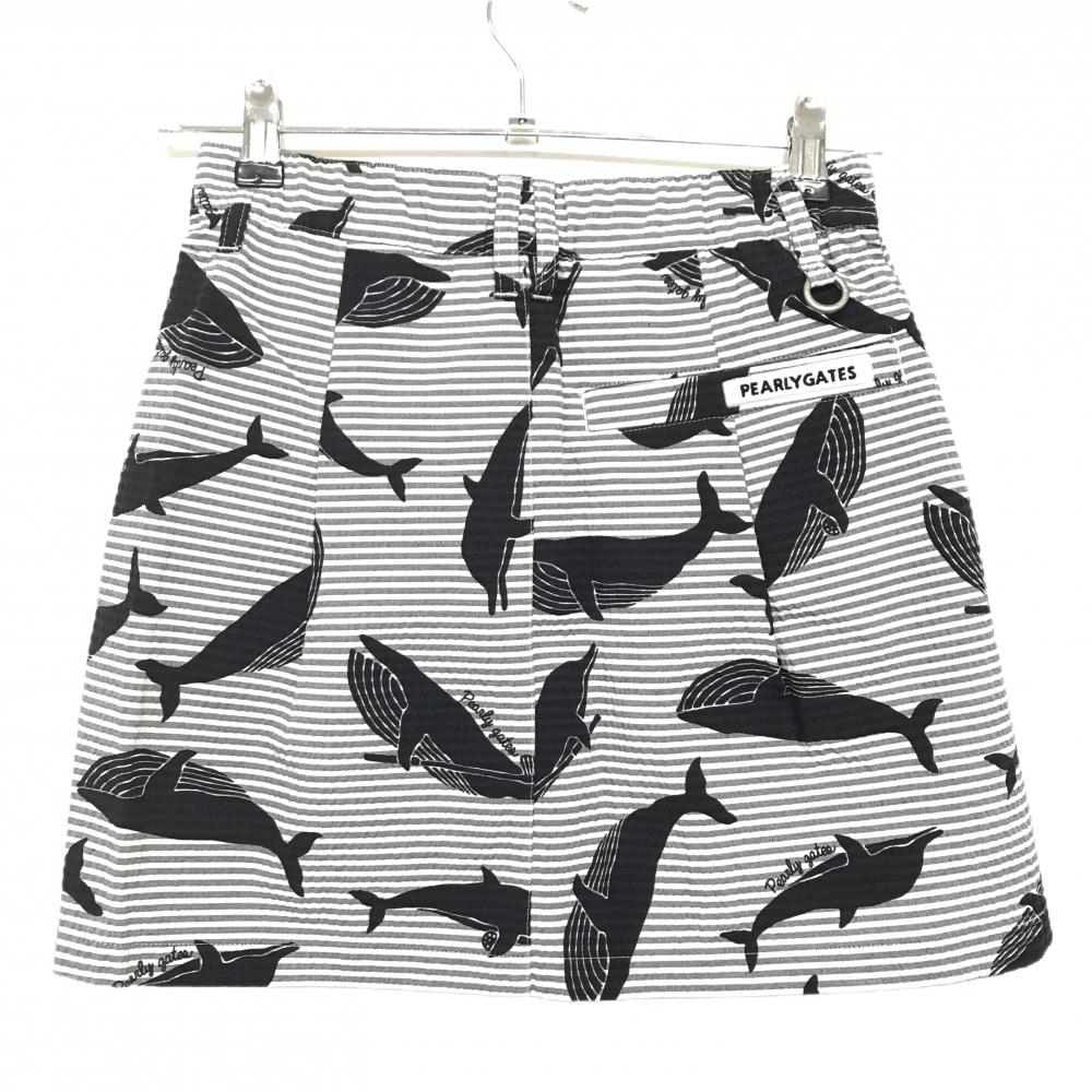 【新品】パーリーゲイツ スカート 白×グレー×黒 総柄 イルカ クジラ ボーダー レディース 00(XS) ゴルフウェア PEARLY GATES