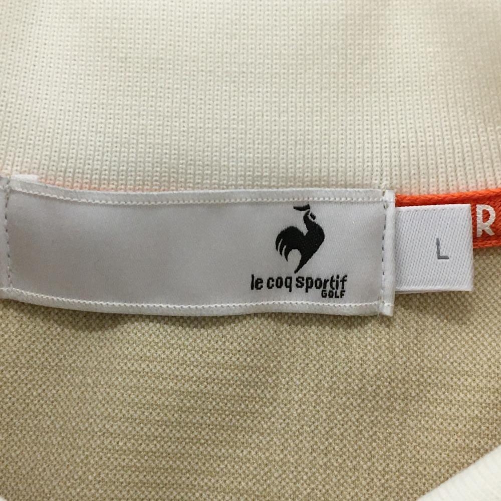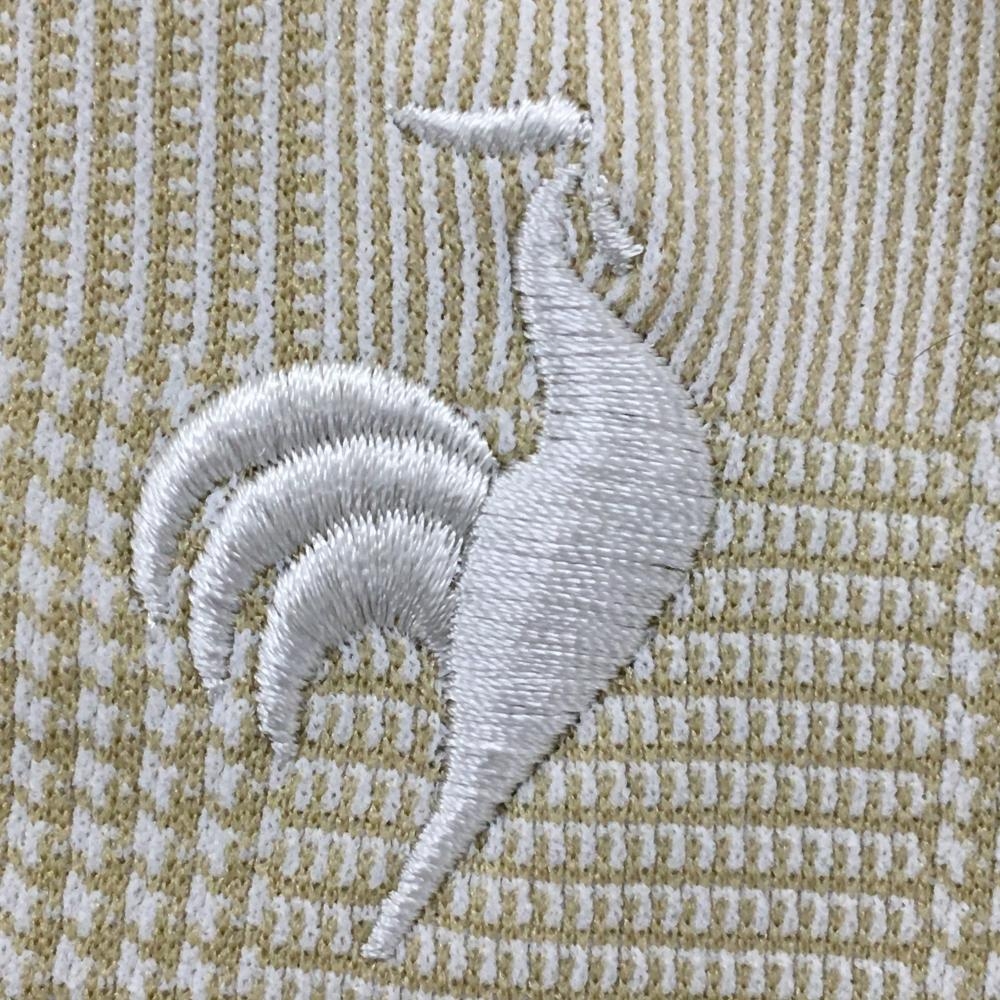【超美品】ルコックゴルフ 長袖ポロシャツ ベージュ グレンチェック風 ロゴ白 レディース L ゴルフウェア 2024年モデル le coq sportif