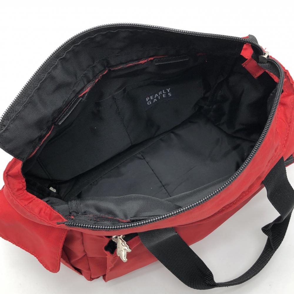 【美品】パーリーゲイツ カートバッグ レッド 格子柄地模様角 内外サイドポケット ゴルフ PEARLY GATES