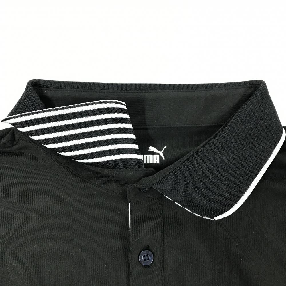 【超美品】プーマ 半袖ポロシャツ 黒×白 襟裏ボーダー ロゴ メンズ XXL ゴルフウェア 大きいサイズ PUMA