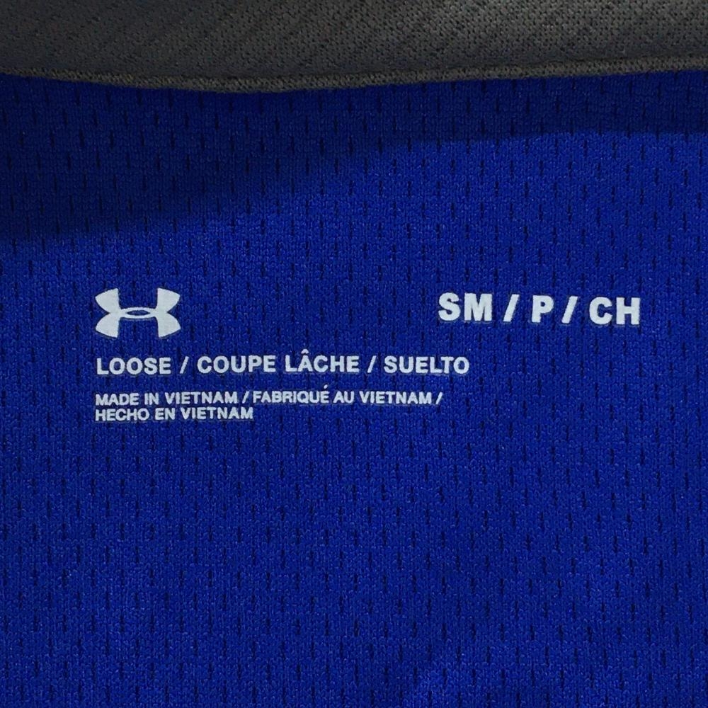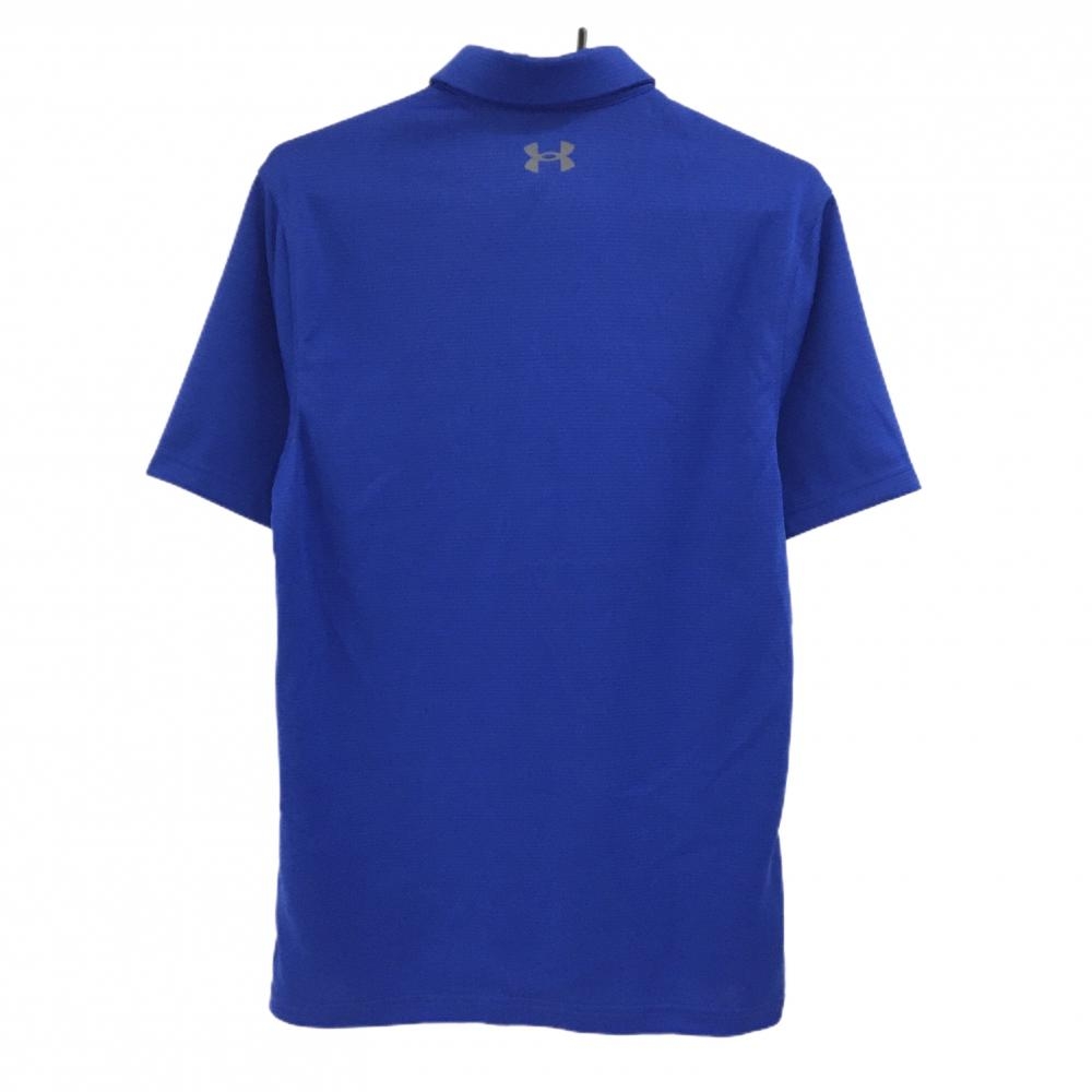 【超美品】アンダーアーマー 半袖ポロシャツ ブルー×グレー ボーダー織生地 胸元ロゴ メンズ SM/P/CH ゴルフウェア UNDER ARMOUR