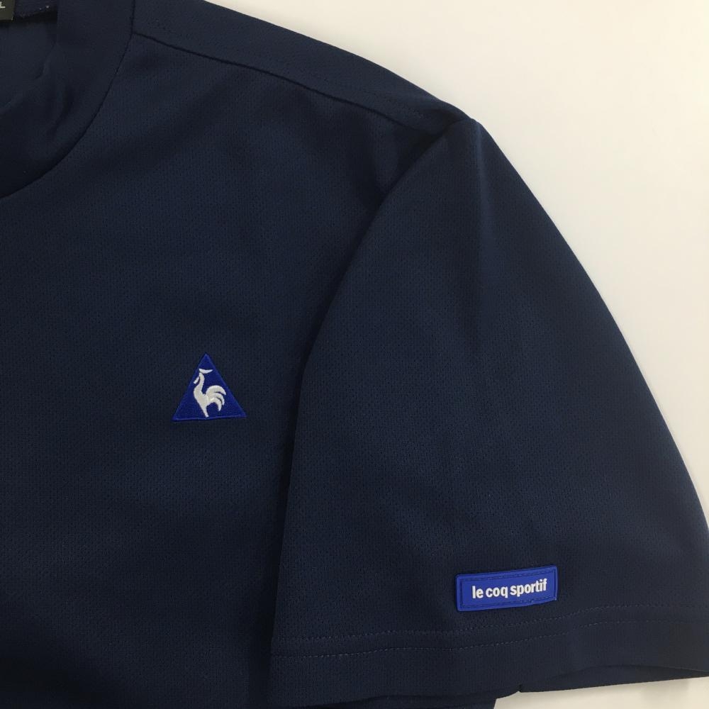 【美品】ルコックゴルフ 半袖ハイネックシャツ ネイビー ロゴ刺しゅう 袖シリコンワッペン メンズ LL ゴルフウェア le coq sportif
