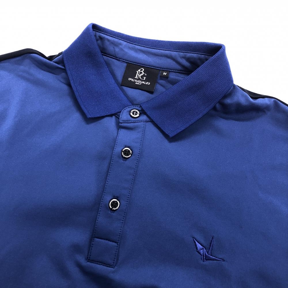 【超美品】ウノピゥウノウグァーレトレゴルフ 半袖ポロシャツ ブルー×ネイビー 切替 メンズ IV(M) ゴルフウェア 1PIU1UGUALE3