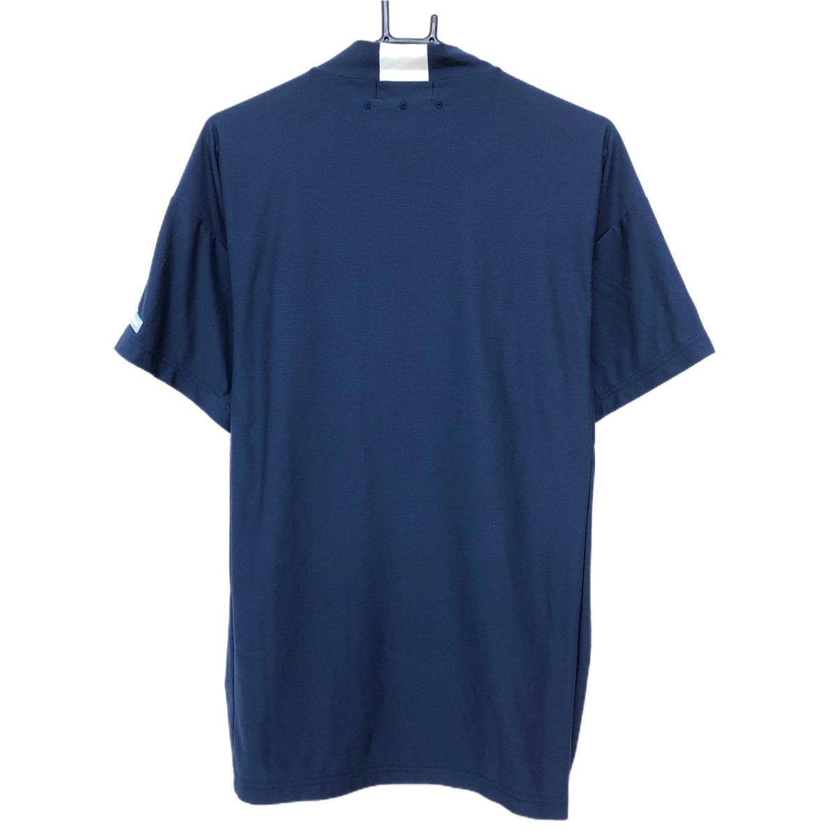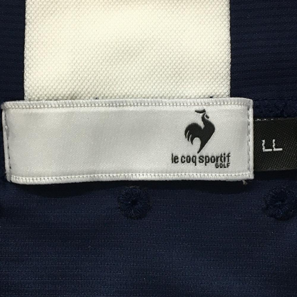 【美品】ルコックゴルフ 半袖ハイネックシャツ ネイビー×白 フロント英字 メンズ LL ゴルフウェア le coq sportif
