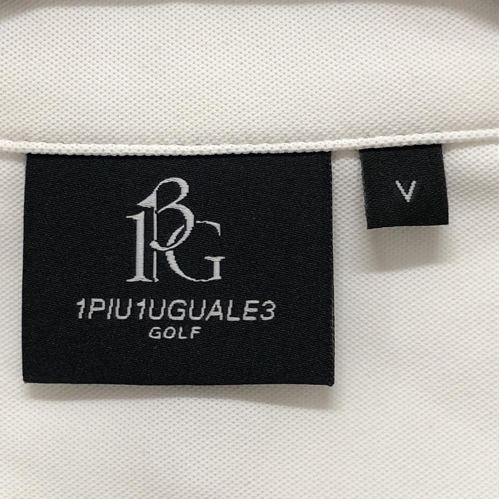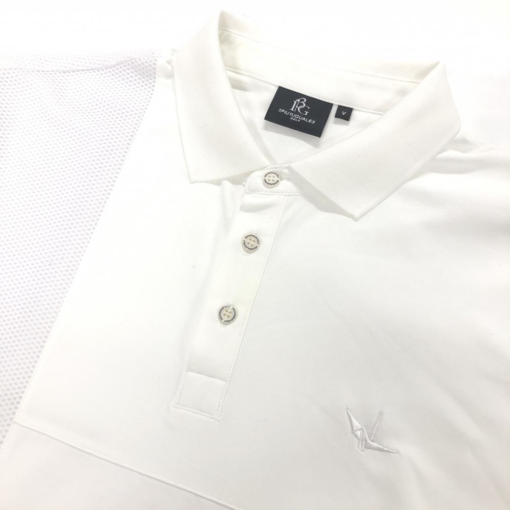 【超美品】ウノピゥウノウグァーレトレゴルフ 半袖ポロシャツ 白 メッシュ切替 ロゴ刺しゅう メンズ V(L) ゴルフウェア 1PIU1UGUALE3