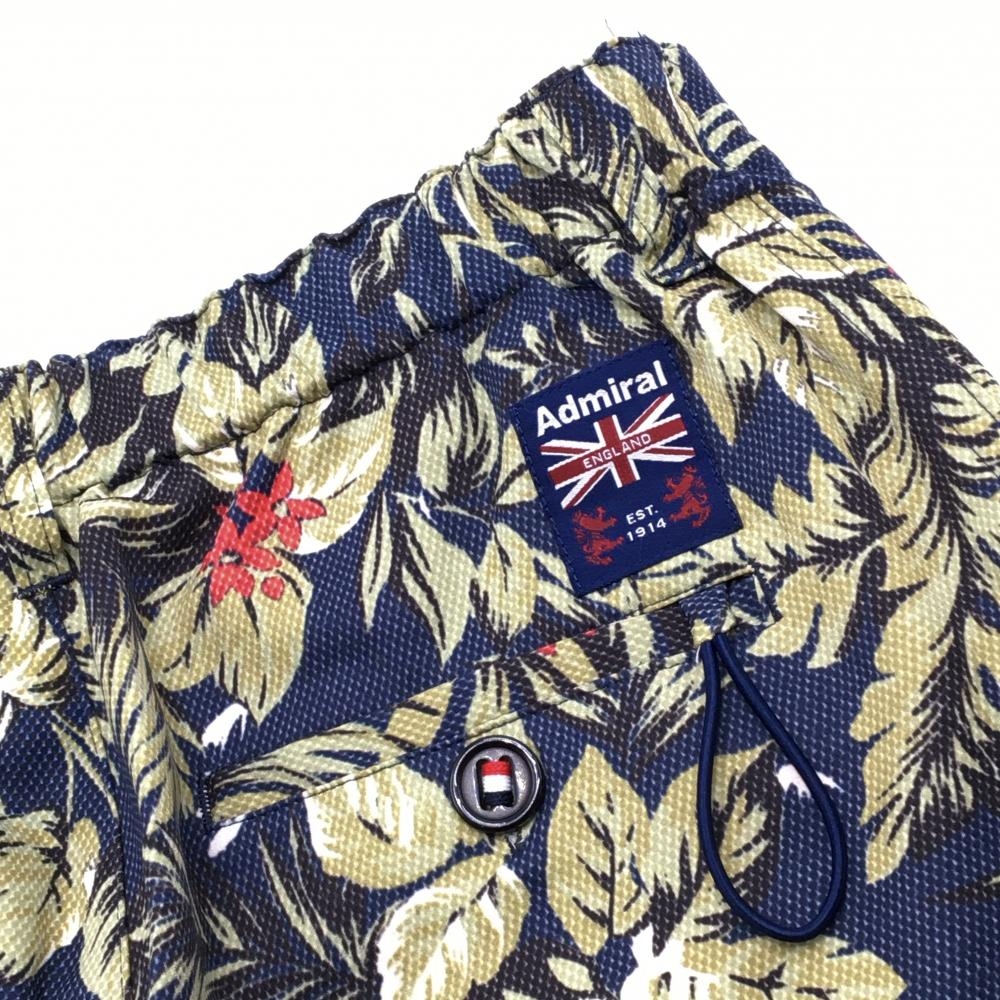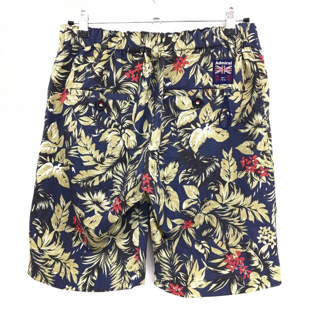 【超美品】アドミラル ハーフパンツ ネイビー×ベージュ リーフ柄 ストレッチ メンズ M ゴルフウェア Admiral