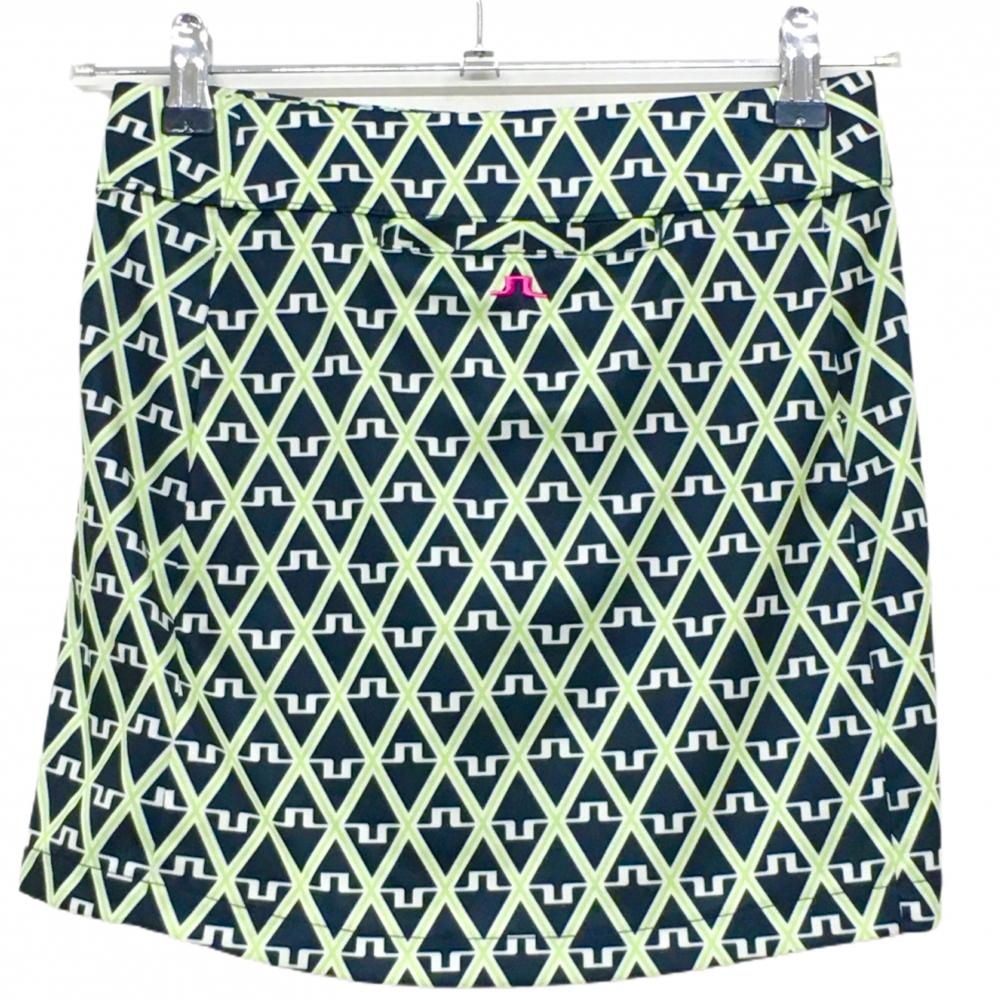 【超美品】ジェイリンドバーグ スカート 黒×白×ライトグリーン 総柄 ロゴ レディース XS ゴルフウェア 2024年モデル J.LINDEBERG