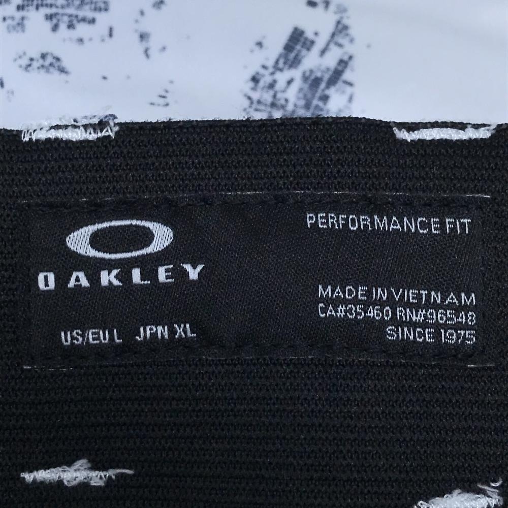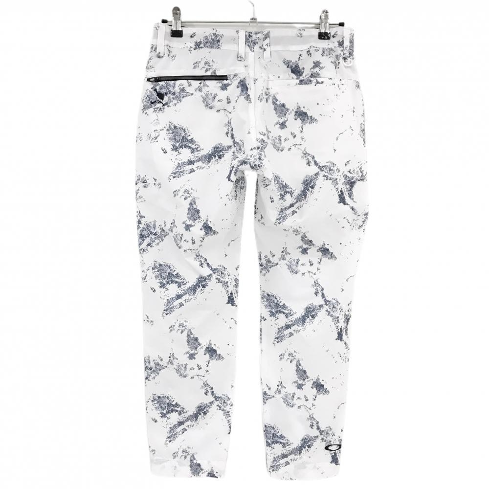 【美品】オークリー パンツ 白×ネイビー 総柄 ストッチ ロゴプリント レディース XL ゴルフウェア Oakley