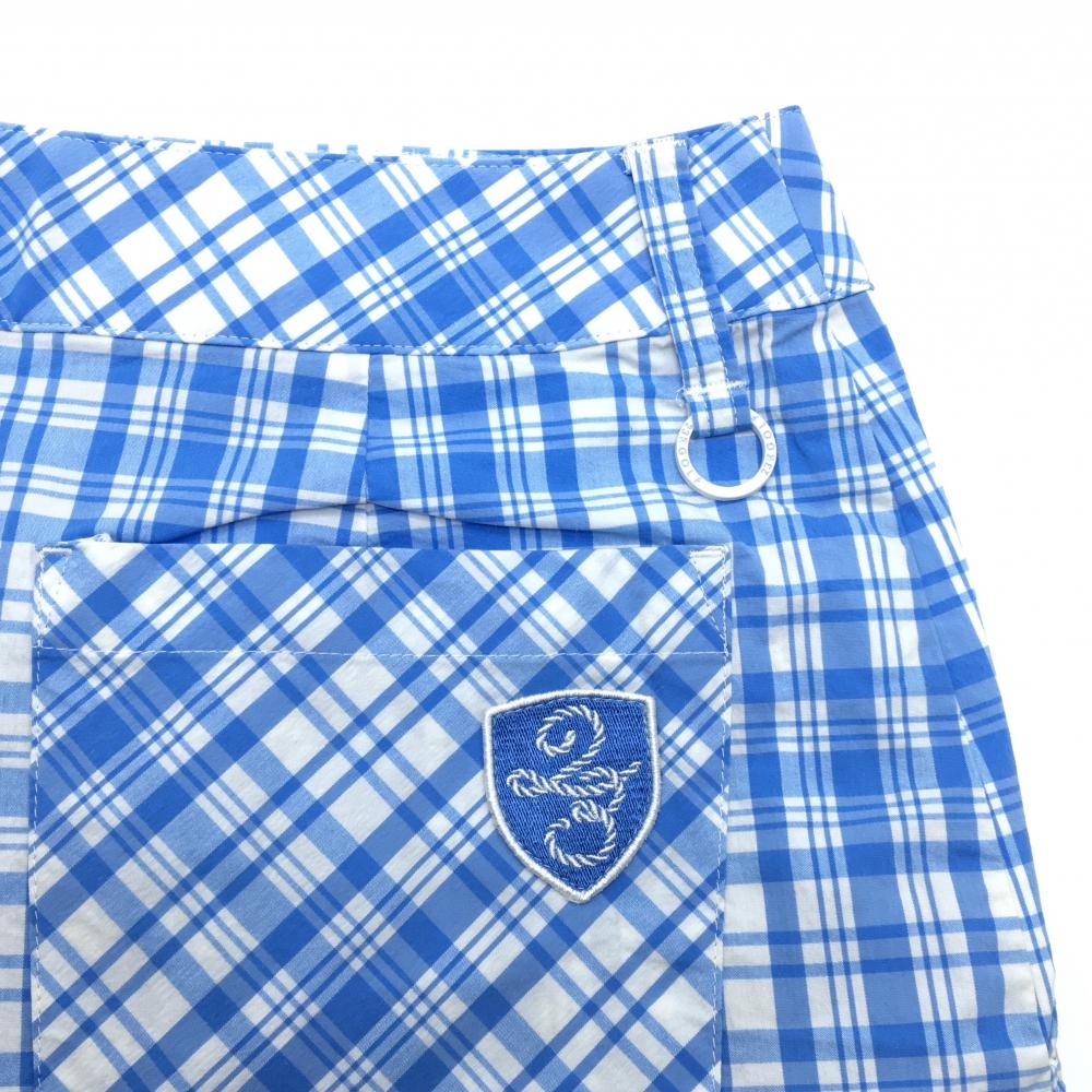 【美品】23区ゴルフ スカート 白×ライトブルー チェック ストレッチ レディース 61 ゴルフウェア 23区