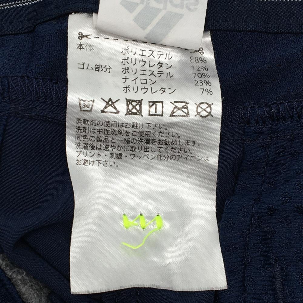 【超美品】アディダス ハーフパンツ ネイビー 地模様 ウエスト後ろゴム バック立体ロゴ メンズ S ゴルフウェア adidas