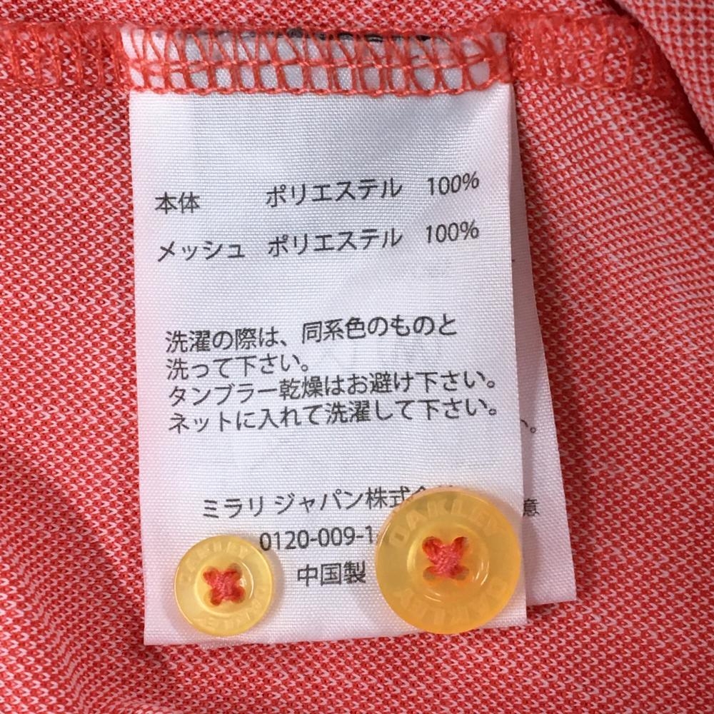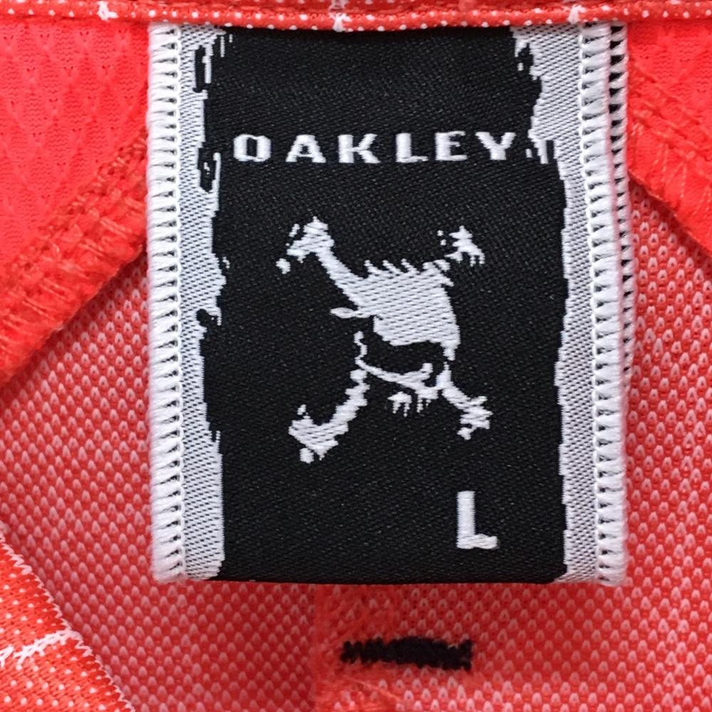 オークリー 半袖ポロシャツ オレンジ×白 総柄 ハーフジップ ボタンダウン ティー装着可 メンズ L ゴルフウェア Oakley