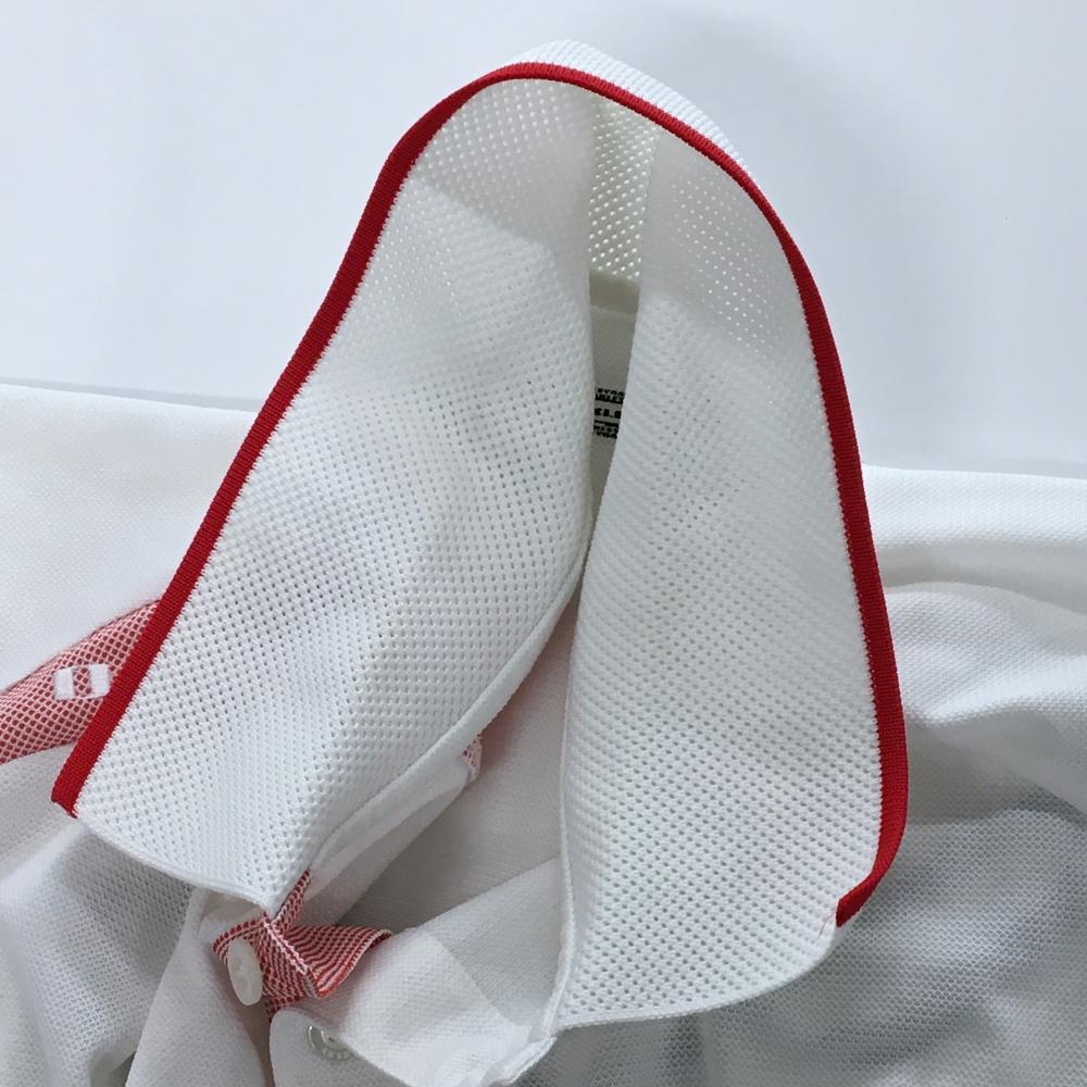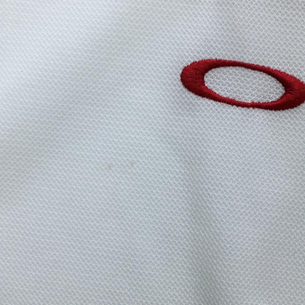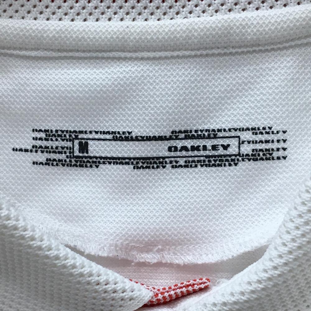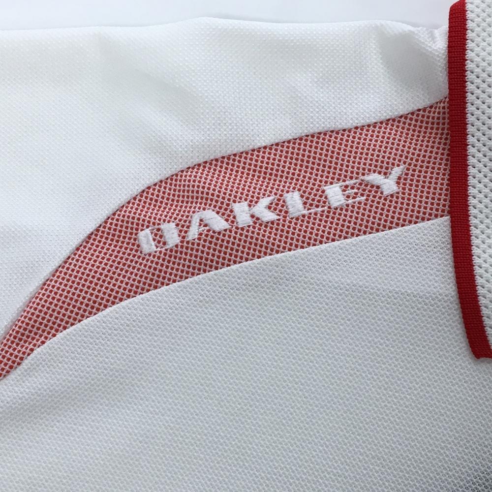 オークリー 半袖ポロシャツ 白×レッド 一部メッシュ ロゴ刺しゅう メンズ M ゴルフウェア Oakley