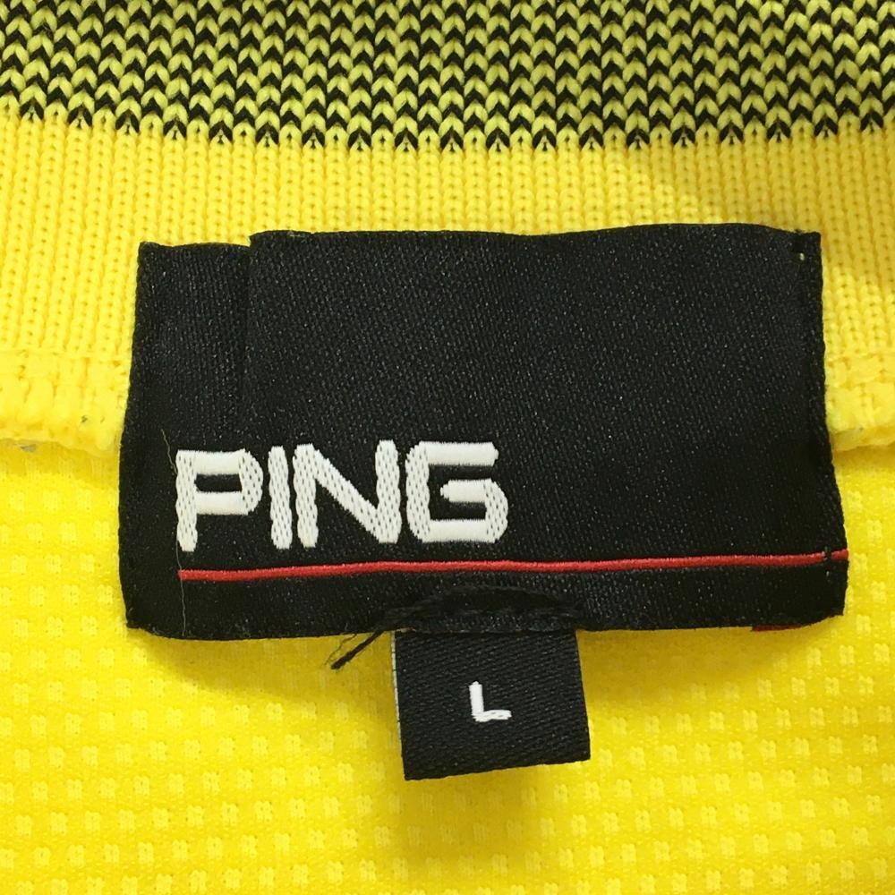 【超美品】ピン 半袖ハイネック イエロー フロントロゴ メンズ L ゴルフウェア 2025年モデル PING