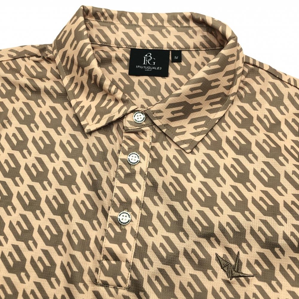 【超美品】ウノピゥウノウグァーレトレゴルフ 半袖ポロシャツ ピンクベージュ×グレージュ 総柄 メンズ IV(M) ゴルフウェア 1PIU1UGUALE3