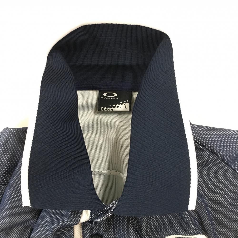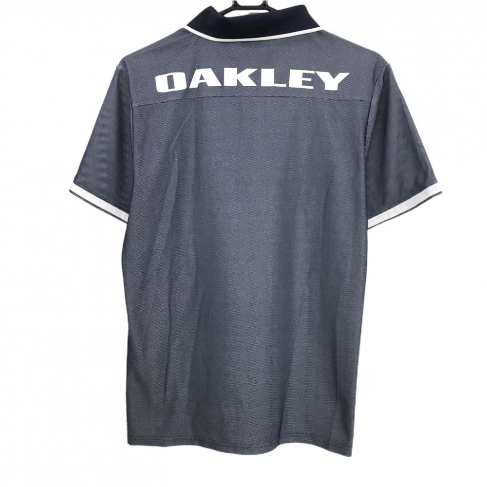 オークリー 半袖ポロシャツ 杢ネイビー 胸ポケット 背面ビッグロゴ メンズ L ゴルフウェア Oakley