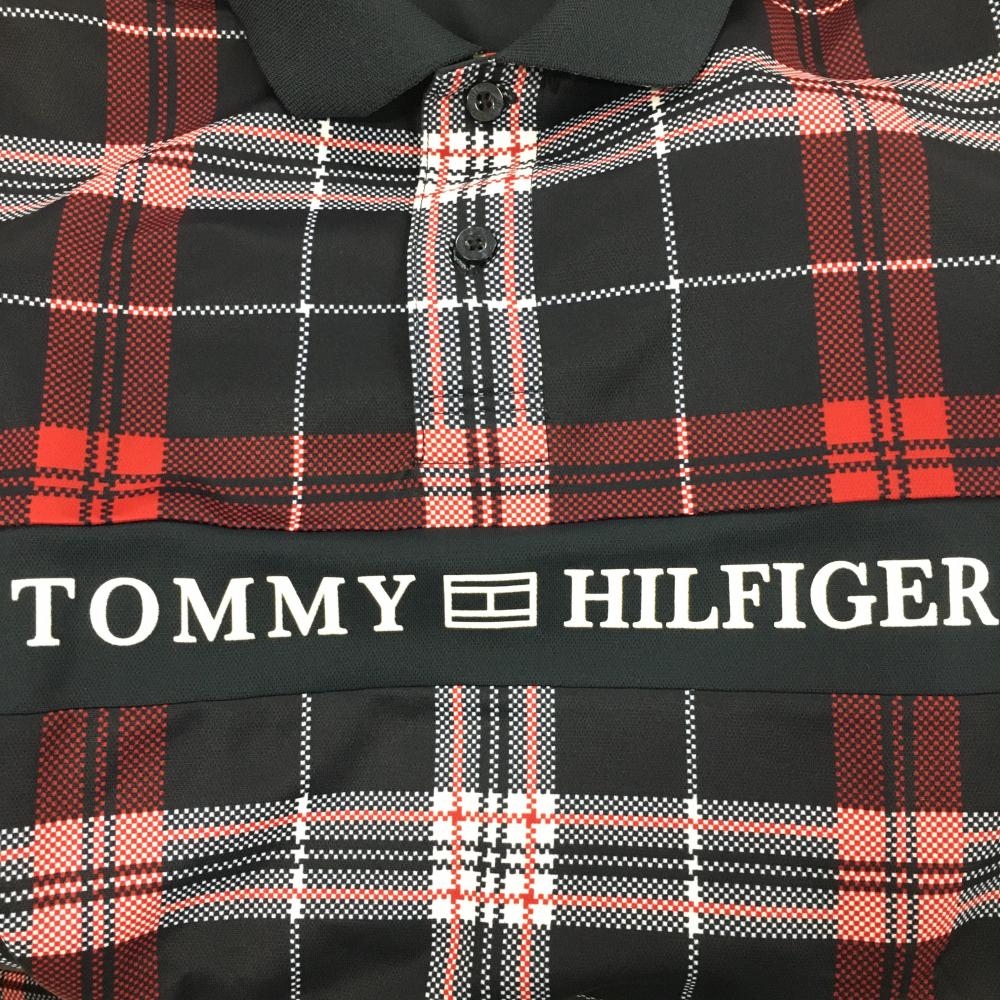 【超美品】トミーヒルフィガーゴルフ 半袖ポロシャツ 黒×レッド×白 チェック 襟裏ボーダー メンズ M ゴルフウェア Tommy Hilfiger Golf