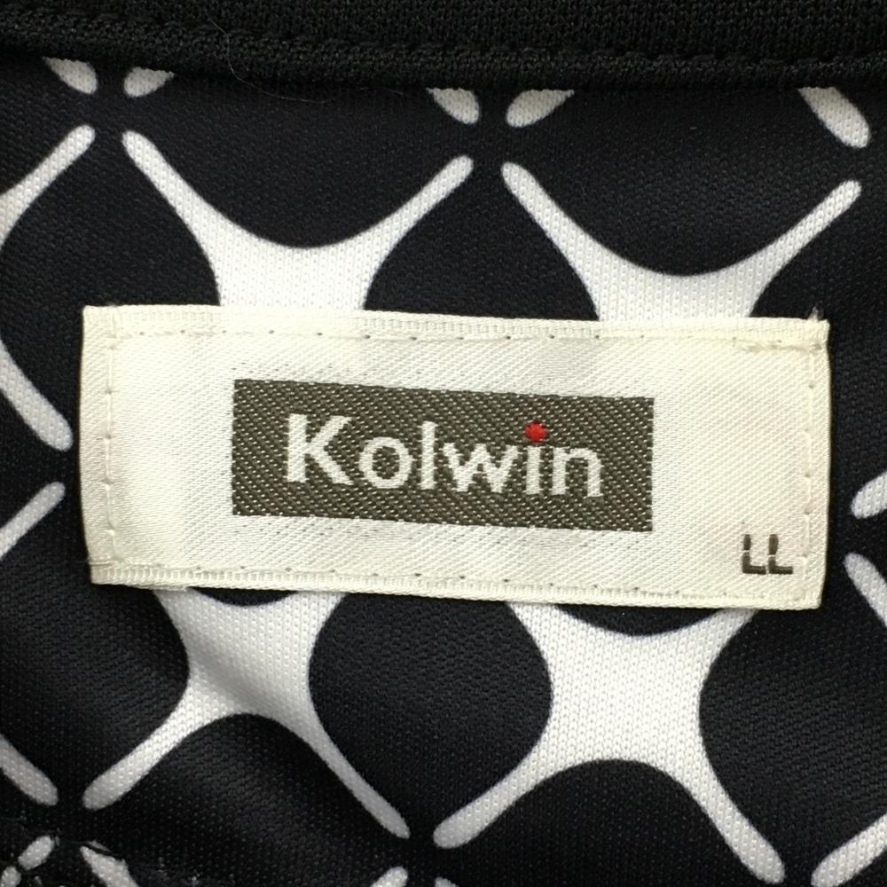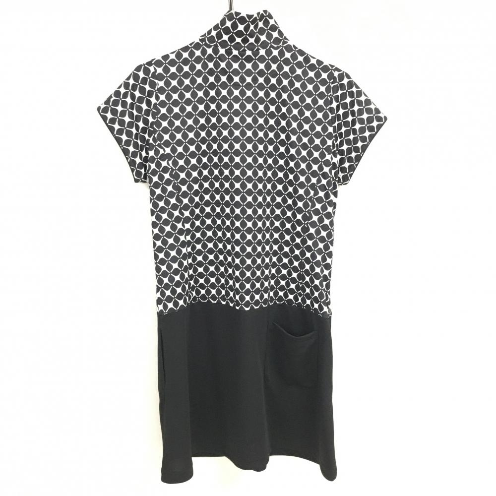 【超美品】コルウィン 半袖ハイネックワンピース 黒×白 上部総柄 上部ジップ レディース LL ゴルフウェア Kolwin