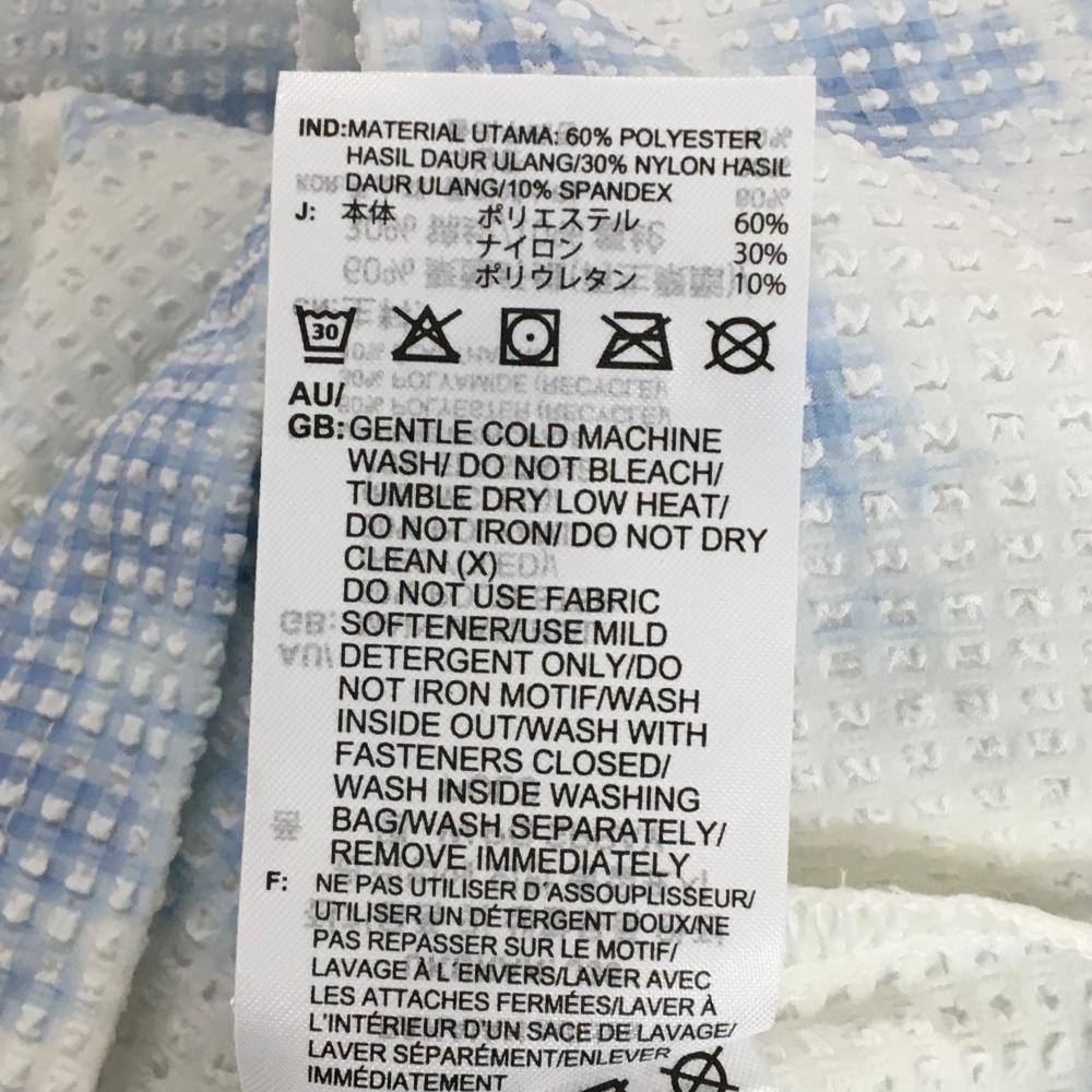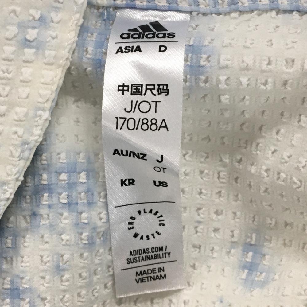 【超美品】アディダス 半袖ポロシャツ 白×ライトブルー スクエアドット調 凸凹生地 袖ワッペン レディース OT ゴルフウェア adidas