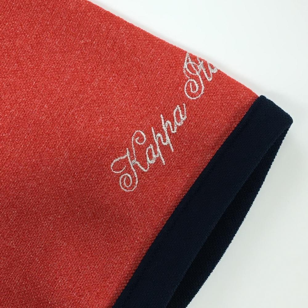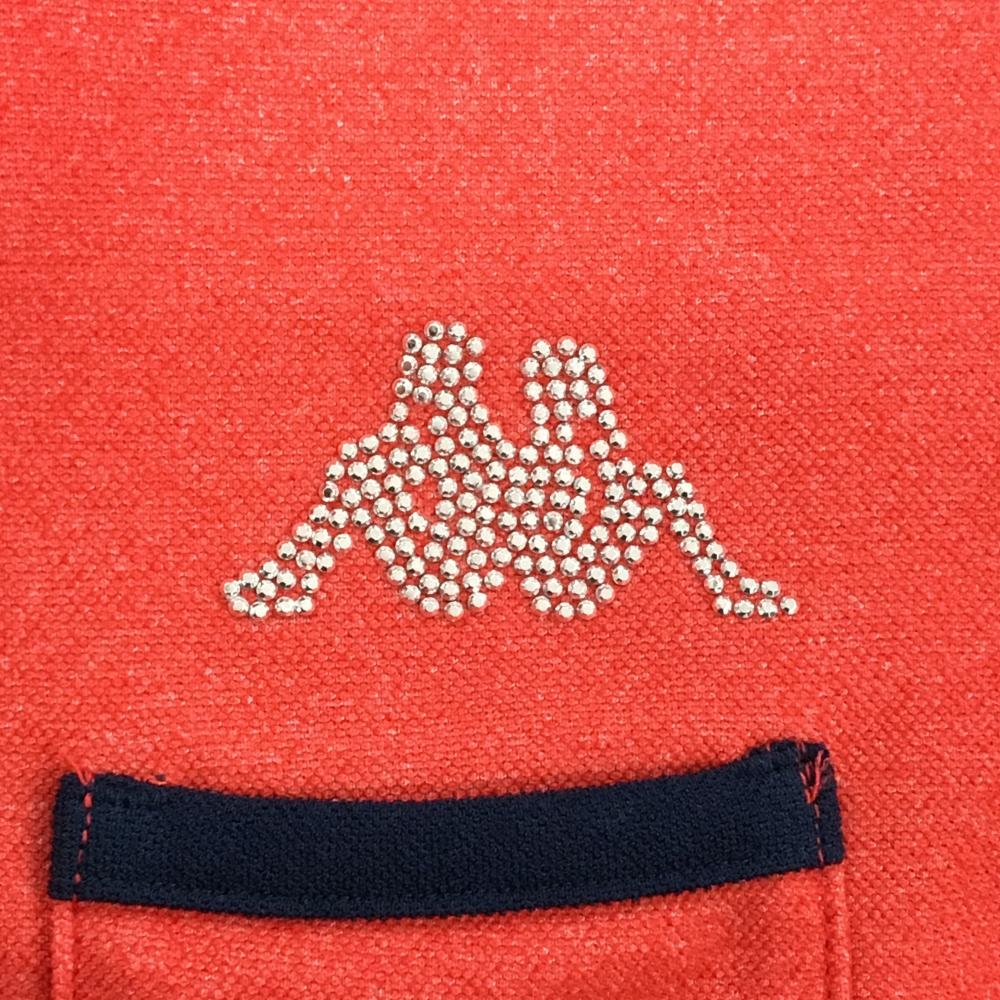 【超美品】カッパ 半袖ポロシャツ 杢レッド×ネイビー 胸ポケット ロゴスタッズ 袖刺しゅう レディース M ゴルフウェア Kappa