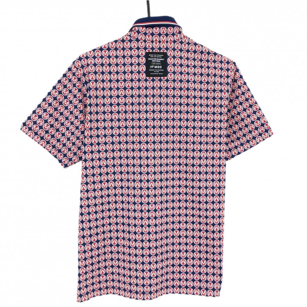 【超美品】マスターバニー 半袖ポロシャツ ネイビー×レッド 総柄 総柄 メンズ 4(M) ゴルフウェア 2025年モデル MASTER BUNNY EDITION