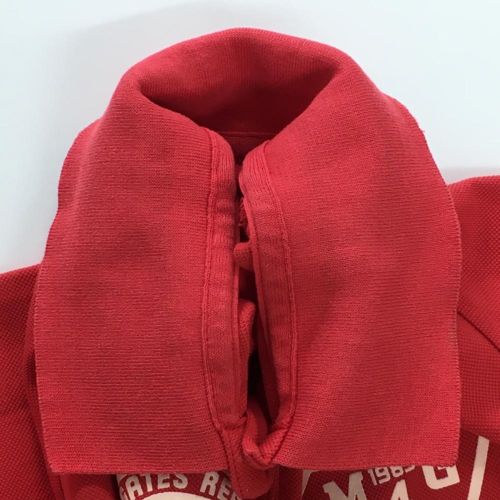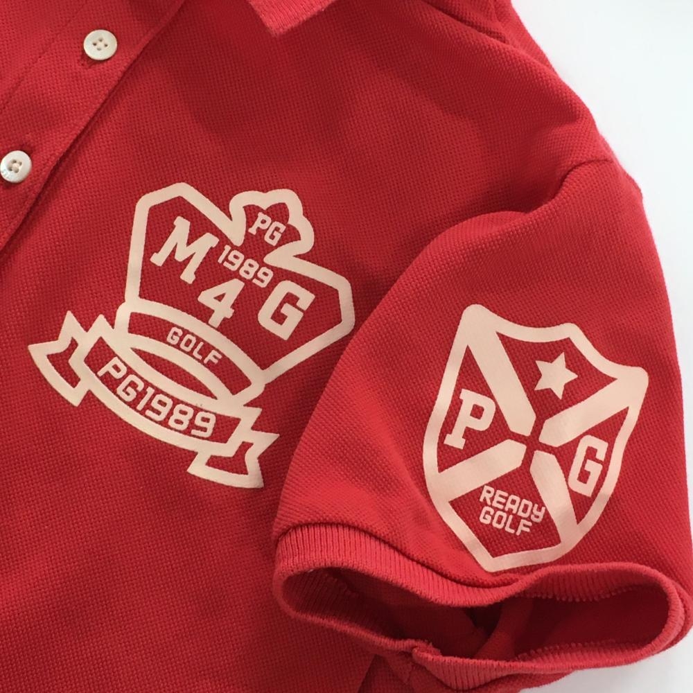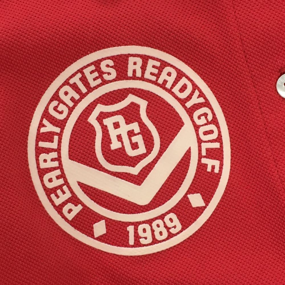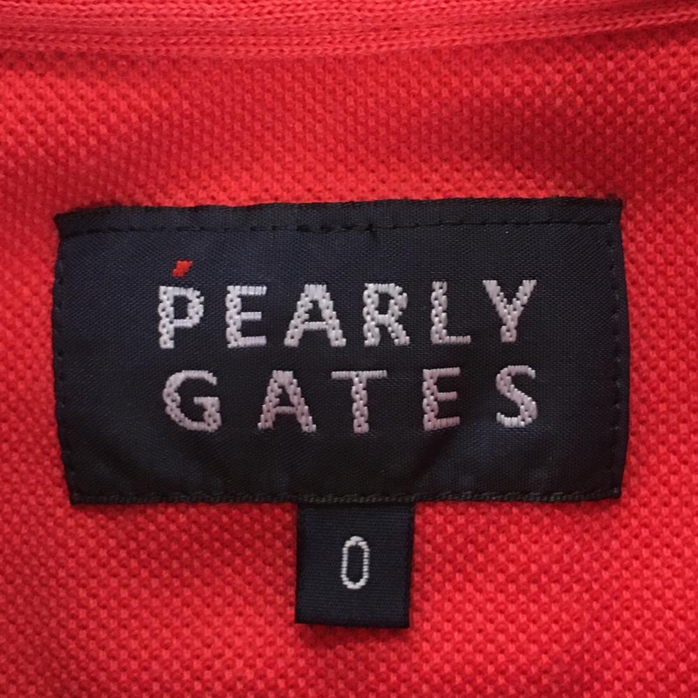 【美品】パーリーゲイツ 半袖ポロシャツ ピンクレッド×ライトベージュ系 ロゴプリント レディース 0(S) ゴルフウェア PEARLY GATES