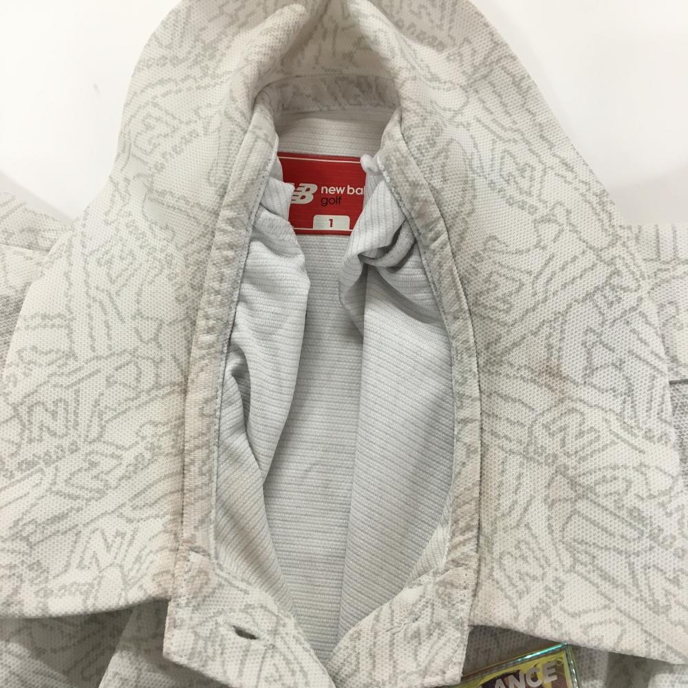 ニューバランスゴルフ 半袖ポロシャツ 白×グレー スニーカー総柄 袖フリル レディース 1(M) ゴルフウェア New Balance