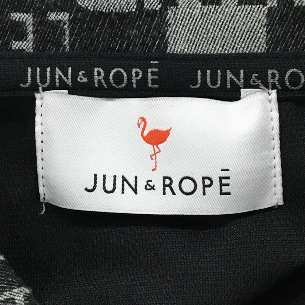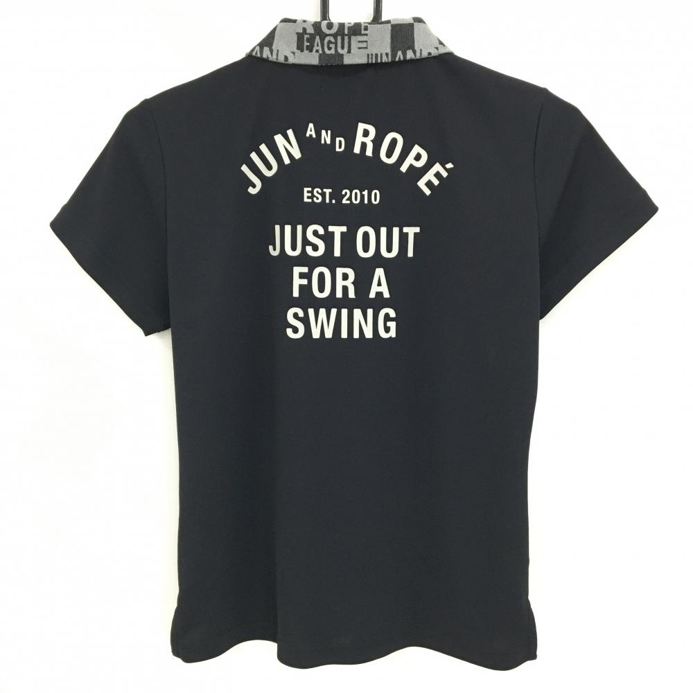 【超美品】ジュンアンドロペ 半袖ポロシャツ 黒×グレー 襟柄 バックプリント レディース S ゴルフウェア JUN&ROPE