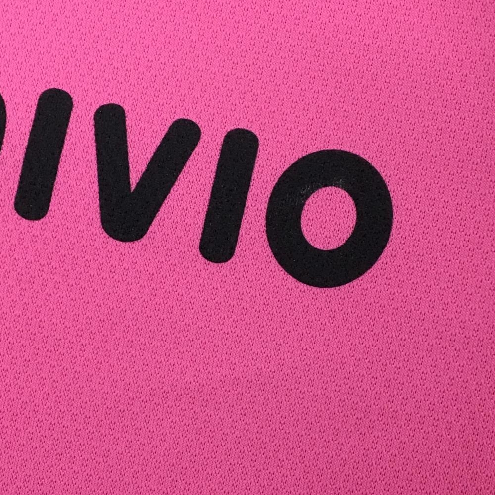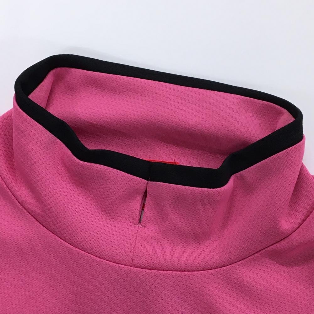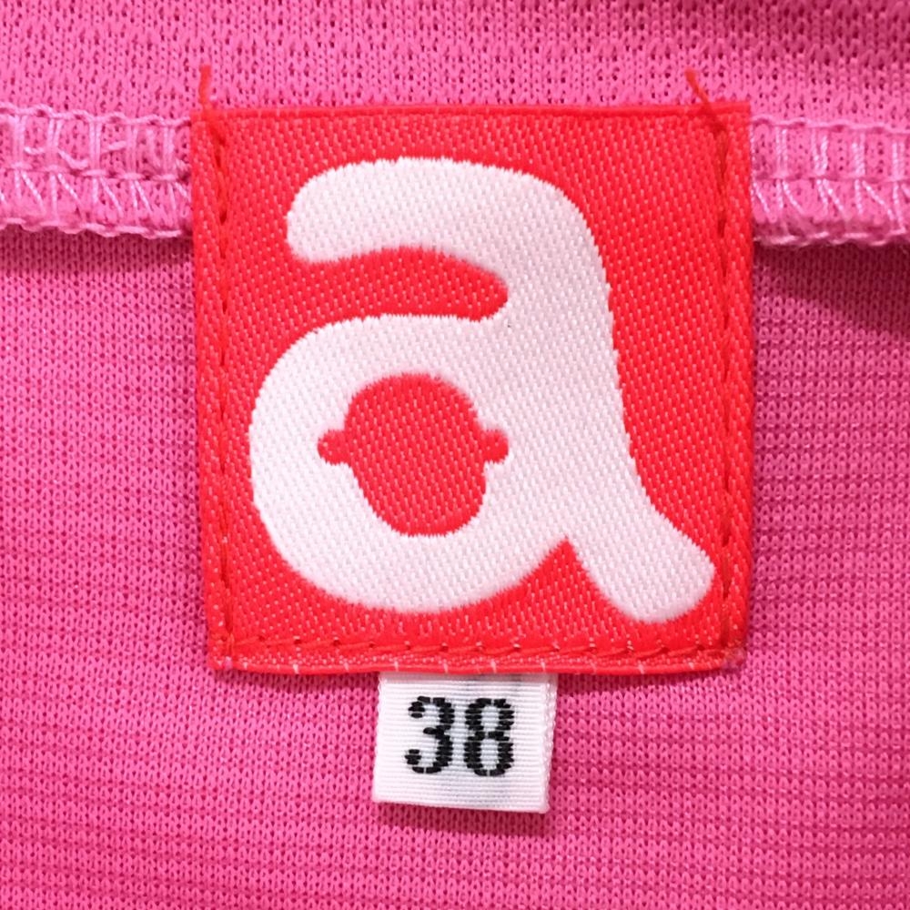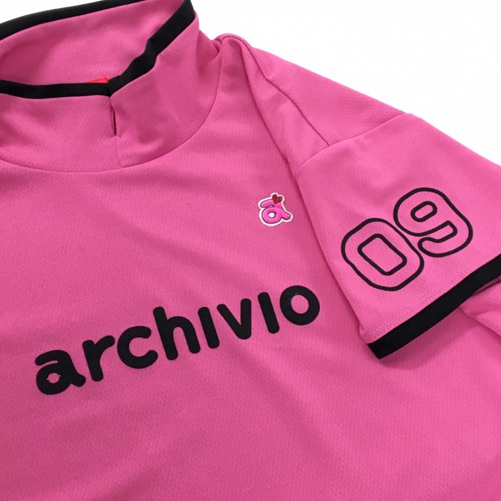 【美品】アルチビオ 襟付き半袖シャツ ピンク×黒 フロントロゴプリント サイドライン レディース 38(M) ゴルフウェア archivio