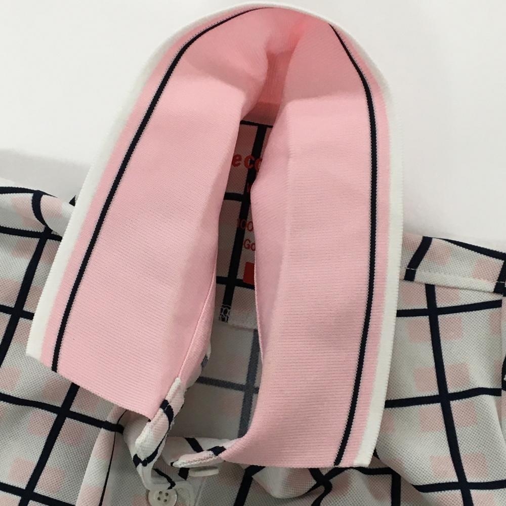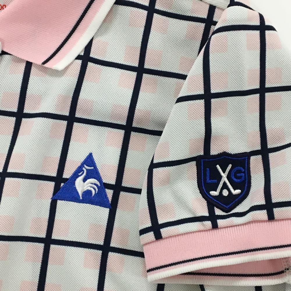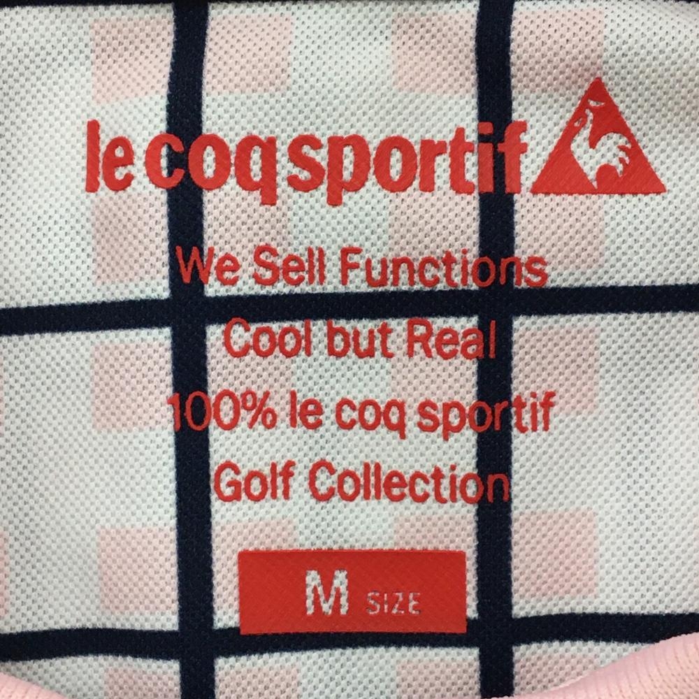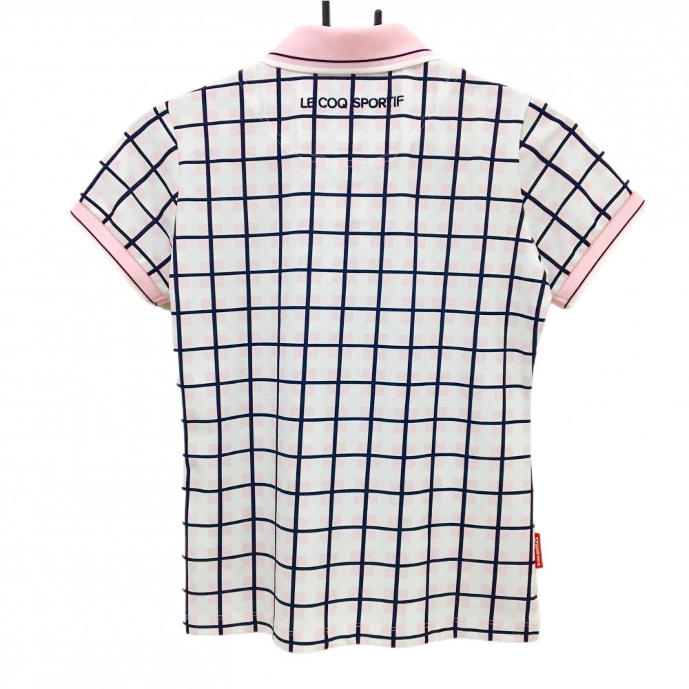 【美品】ルコックゴルフ 半袖ポロシャツ 白×ダークネイビー×ライトピンク 格子チェック レディース M ゴルフウェア le coq sportif