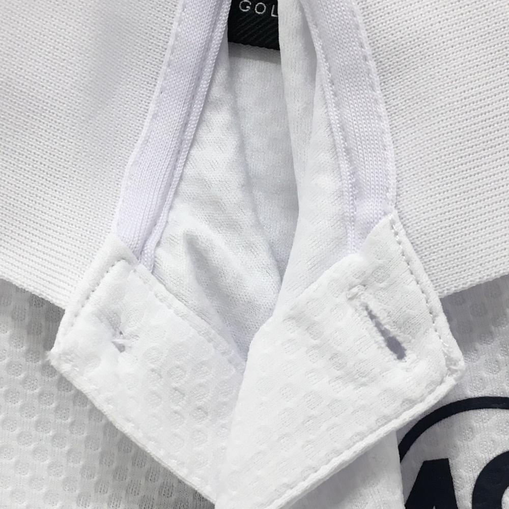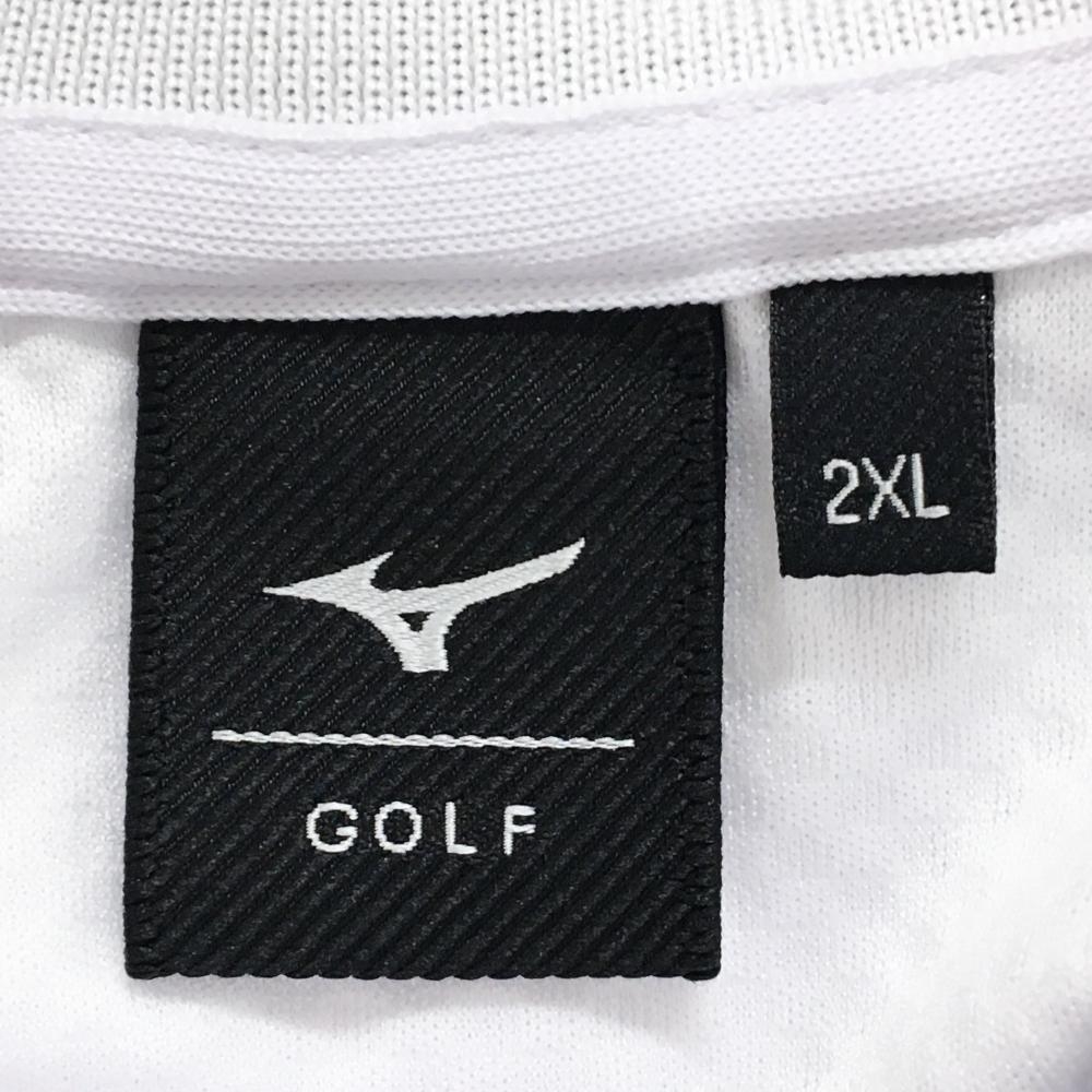 【超美品】ミズノゴルフ 半袖ポロシャツ 白 細目ドット地模様 襟ライン メンズ 2XL ゴルフウェア 大きいサイズ MIZUNO
