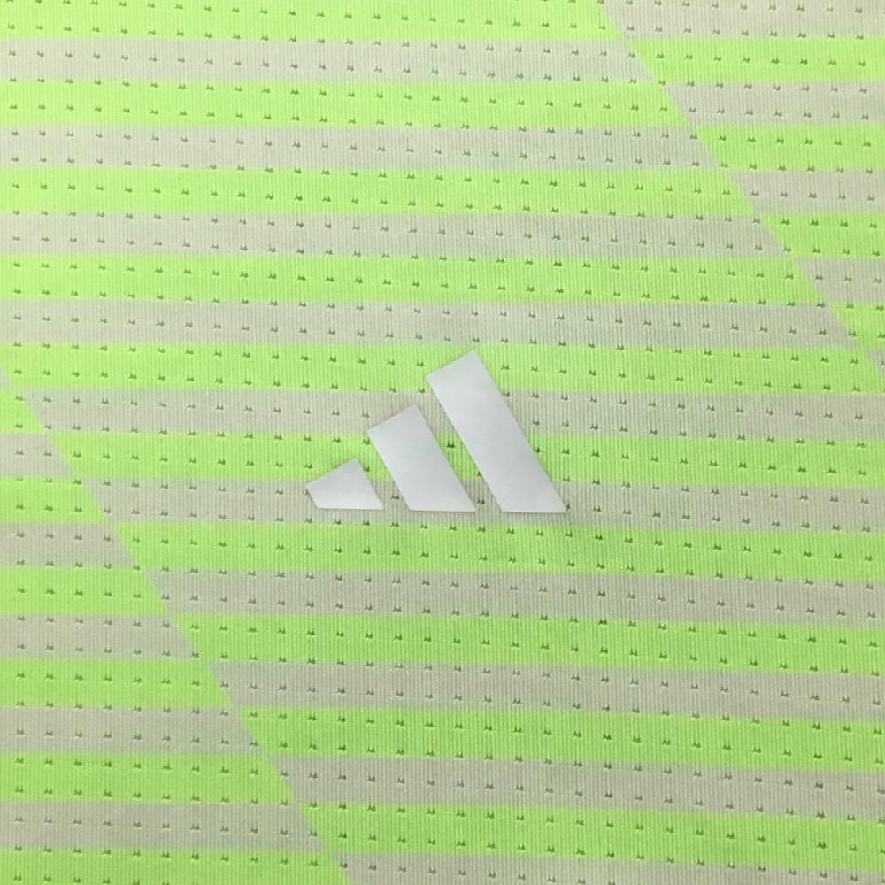 【美品】アディダス 半袖ポロシャツ 白×蛍光グリーン ボーダー風 メッシュ メンズ 2XL ゴルフウェア 大きいサイズ adidas