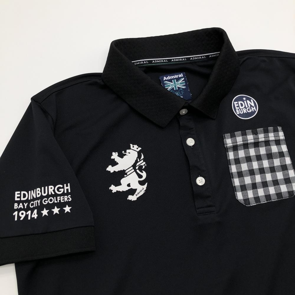 【美品】アドミラル 半袖ポロシャツ 黒×白 胸ポケットチェック メンズ LL ゴルフウェア Admiral