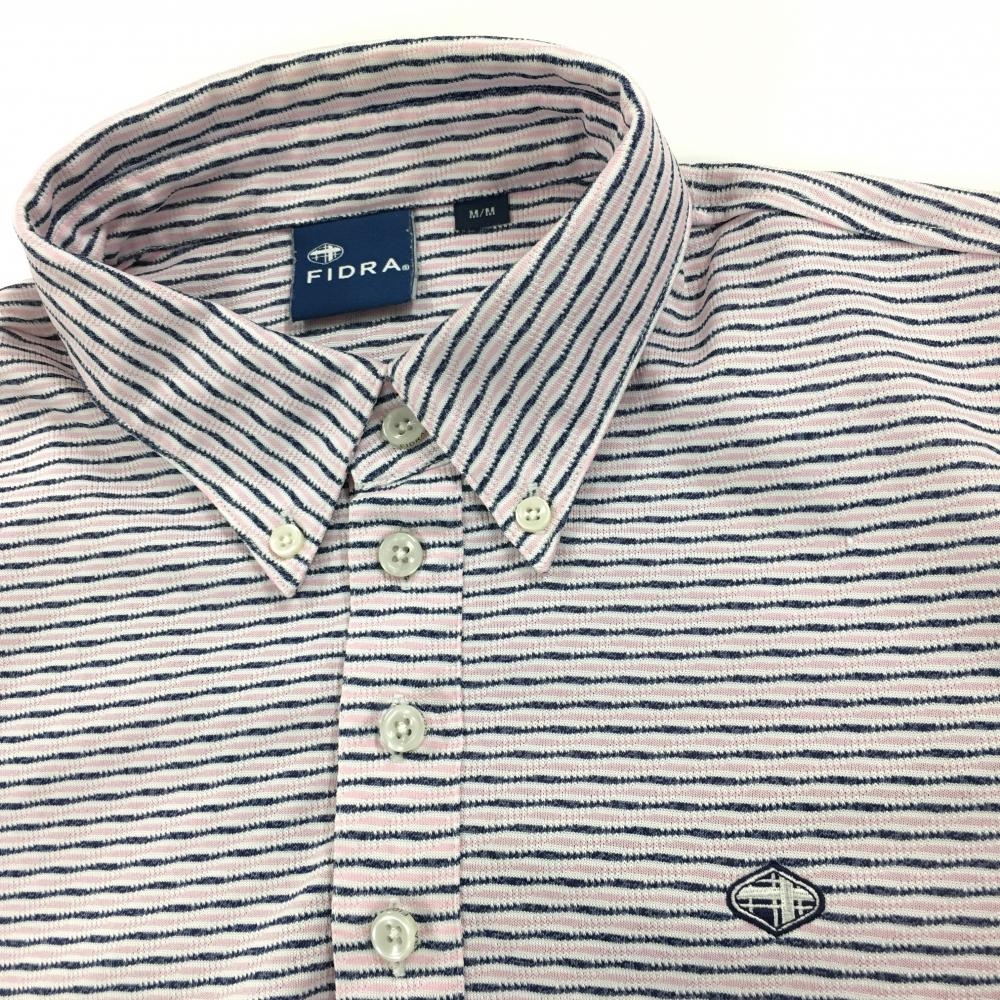 【美品】フィドラ 半袖ポロシャツ ピンク×ネイビー系 ボーダー風 ボタンダウン メンズ M/M ゴルフウェア FIDRA