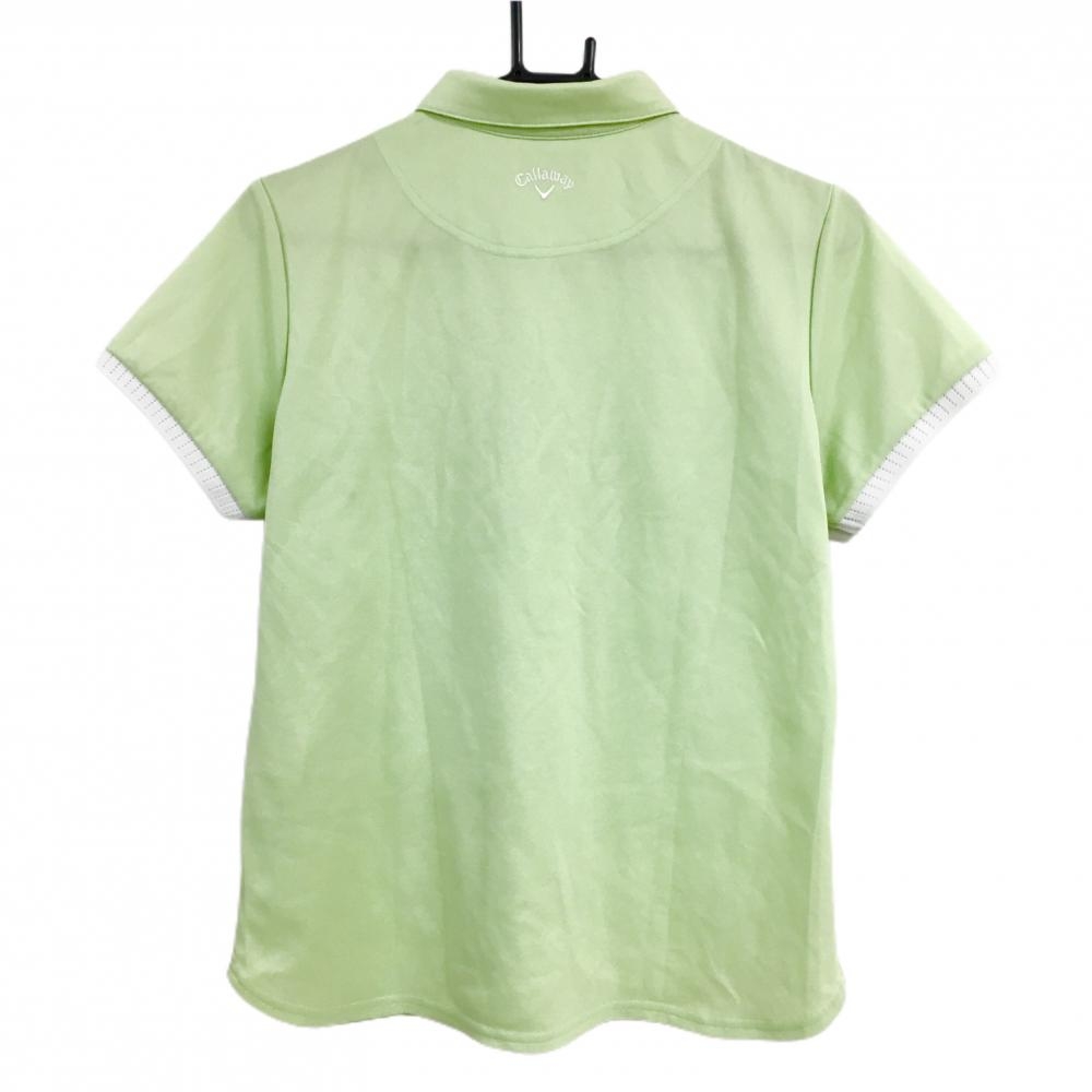 【美品】キャロウェイ 半袖ポロシャツ ライトグリーン×白 ビッグロゴ レディース LL ゴルフウェア Callaway