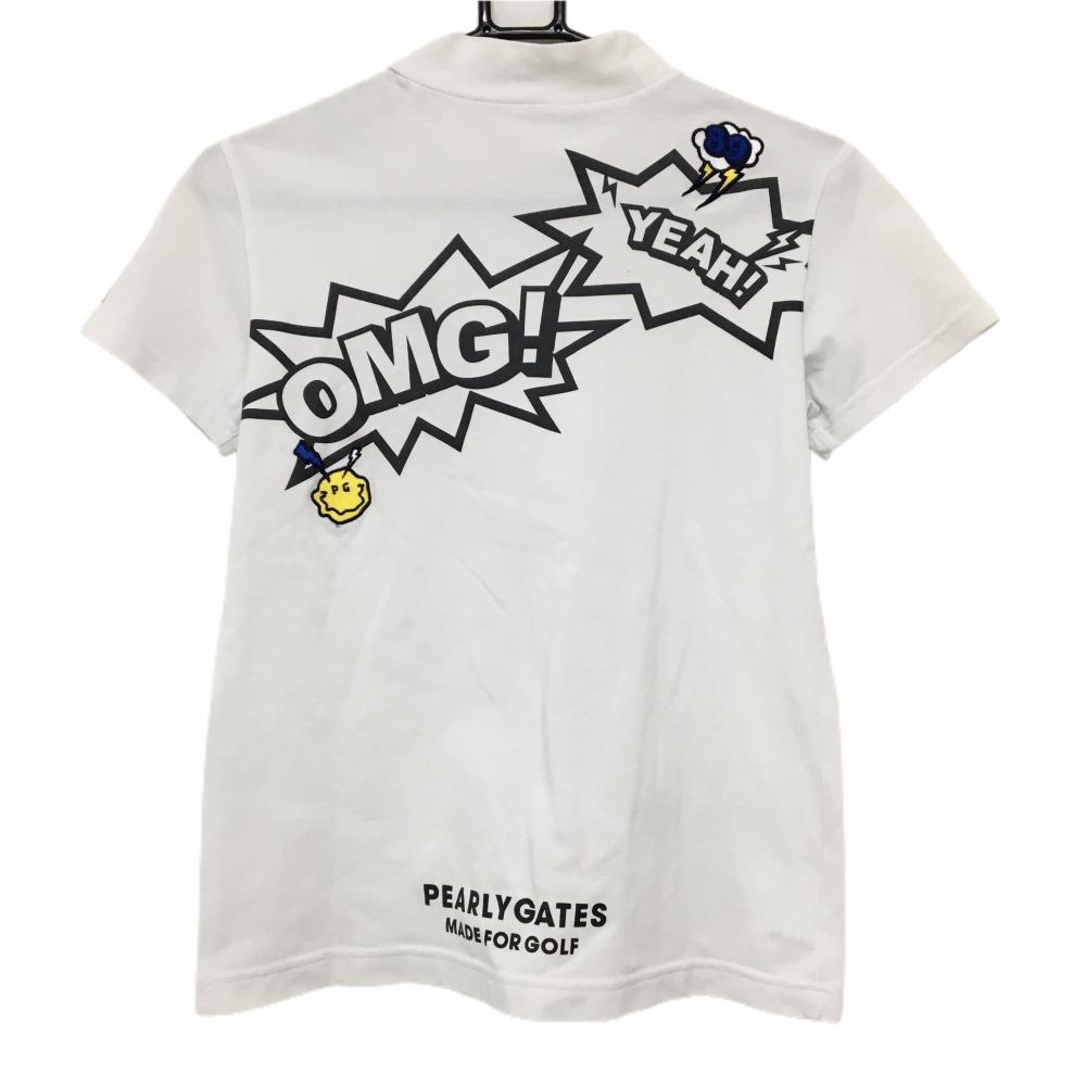 パーリーゲイツ 半袖ハイネックシャツ 白 感電ニコちゃん スマイル バックプリント レディース 1(M) ゴルフウェア PEARLY GATES