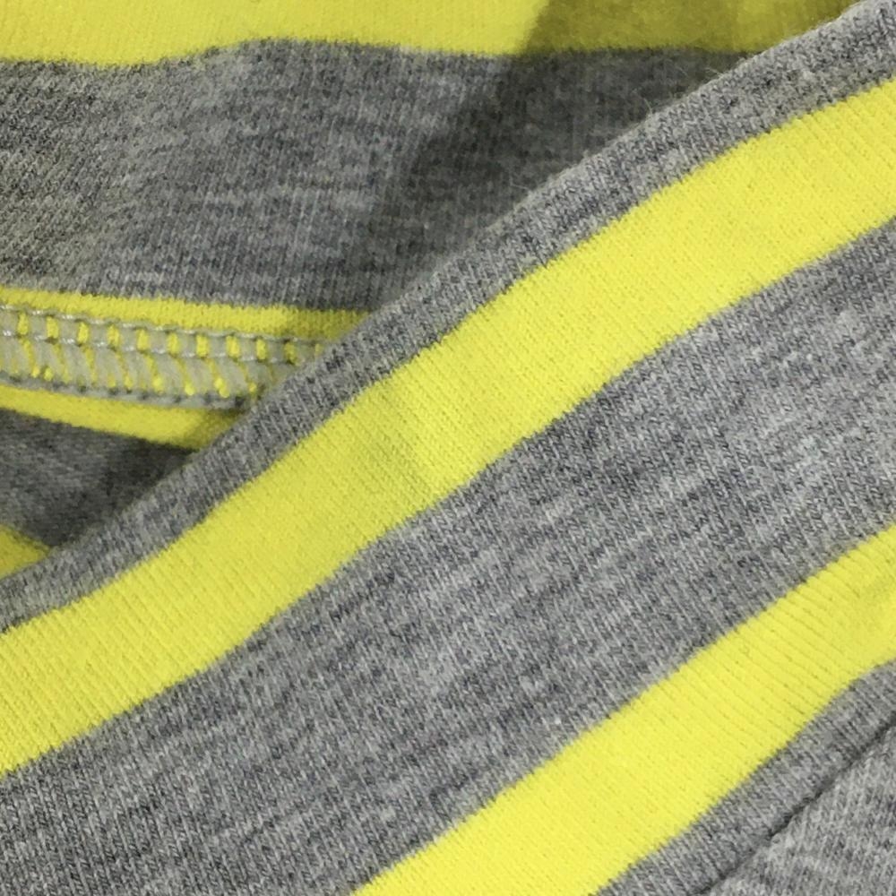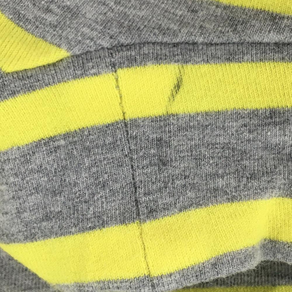 【美品】パーリーゲイツ 半袖ハイネックシャツ グレー×イエロー ボーダー ロゴプリント レディース 0(S) ゴルフウェア PEARLY GATES