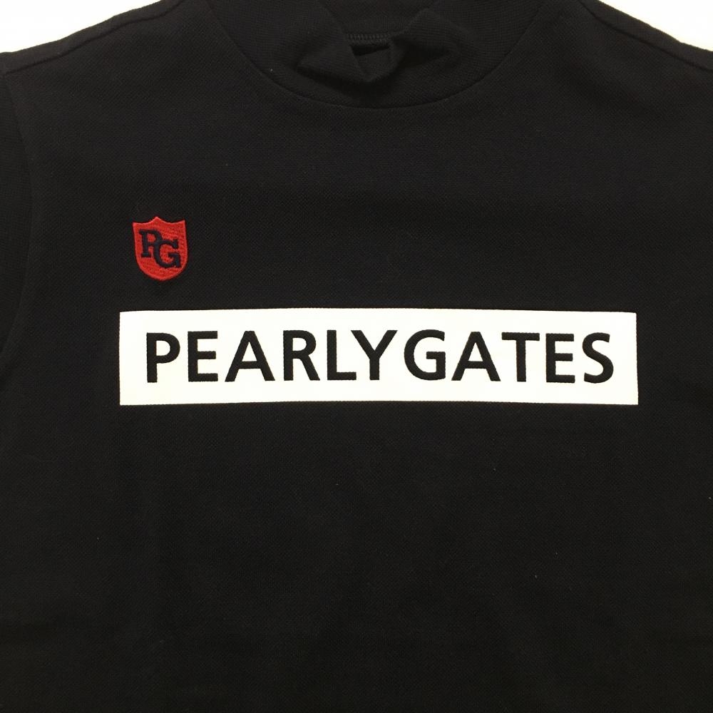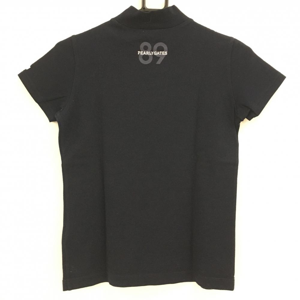 【美品】パーリーゲイツ 半袖ハイネックシャツ ネイビー×白 フロントロゴ レディース 0(S) ゴルフウェア PEARLY GATES