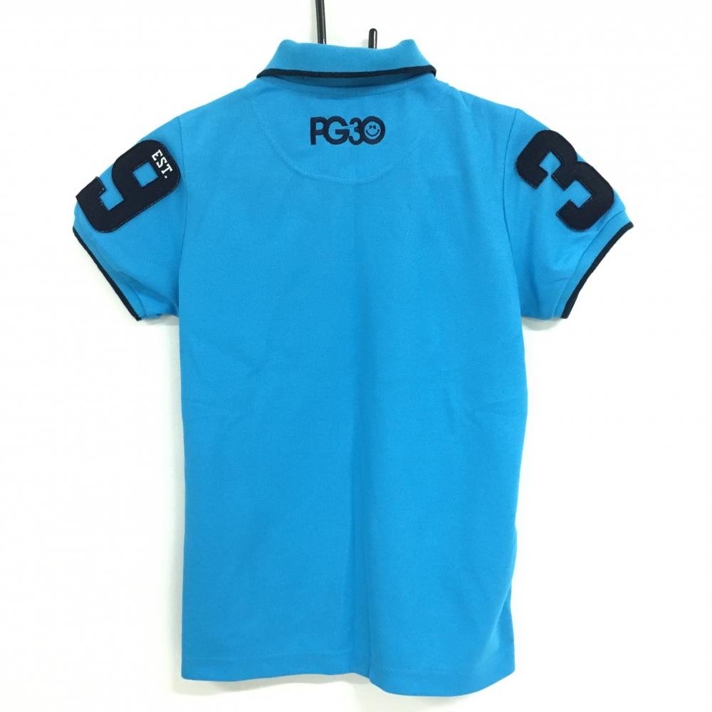パーリーゲイツ 半袖ポロシャツ ブルー×黒 ニコちゃん スマイル 30周年 レディース 0(S) ゴルフウェア PEARLY GATES